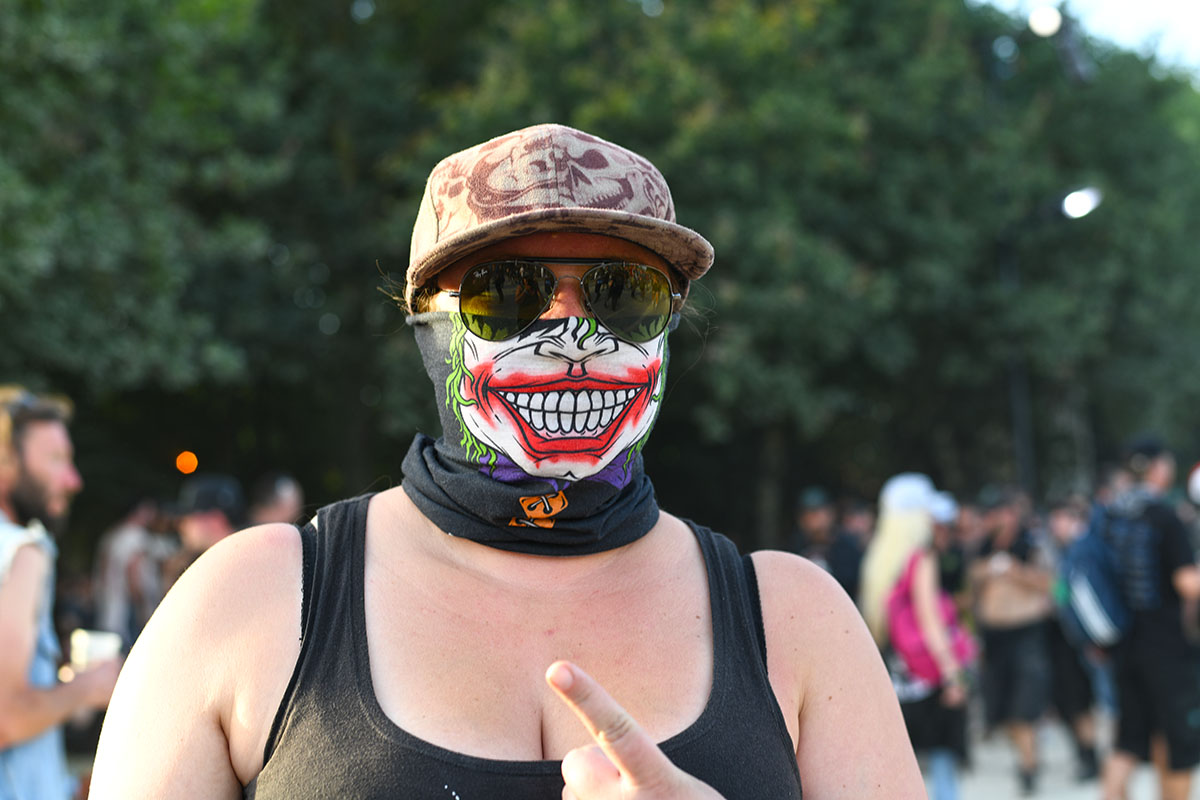 Des dizaines de milliers de métalleux et d’amateurs de musiques extrêmes se sont retrouvés vendredi en « pèlerinage annuel » à Clisson, (Loire-Atlantique). C’est un très grand show, plus que de la musique c’est un vrai spectacle vivant qui s’enchaîne pendant tout le week-end : pyrotechnie, en plus d’un décor digne des plus grands parcs d’attractions. Containers servant de bars, guitare à l’entrée, croix et sculptures géantes, tout est en métal, à l’exception de quelques bancs en forme d’os et de poubelles têtes de morts en pierre. Les festivaliers en prennent pleins les oreilles mais aussi pleins les yeux pendant ces 3 jours de rêve. Ils sont aussi acteur de ce festival, des jeunes, des moins jeunes, habillés en noir, déguisés, maquillés vêtu des traditionnels tee-shirts noirs à l’effigie de gloires du metal aux cornes à bière accrochées à la ceinture.