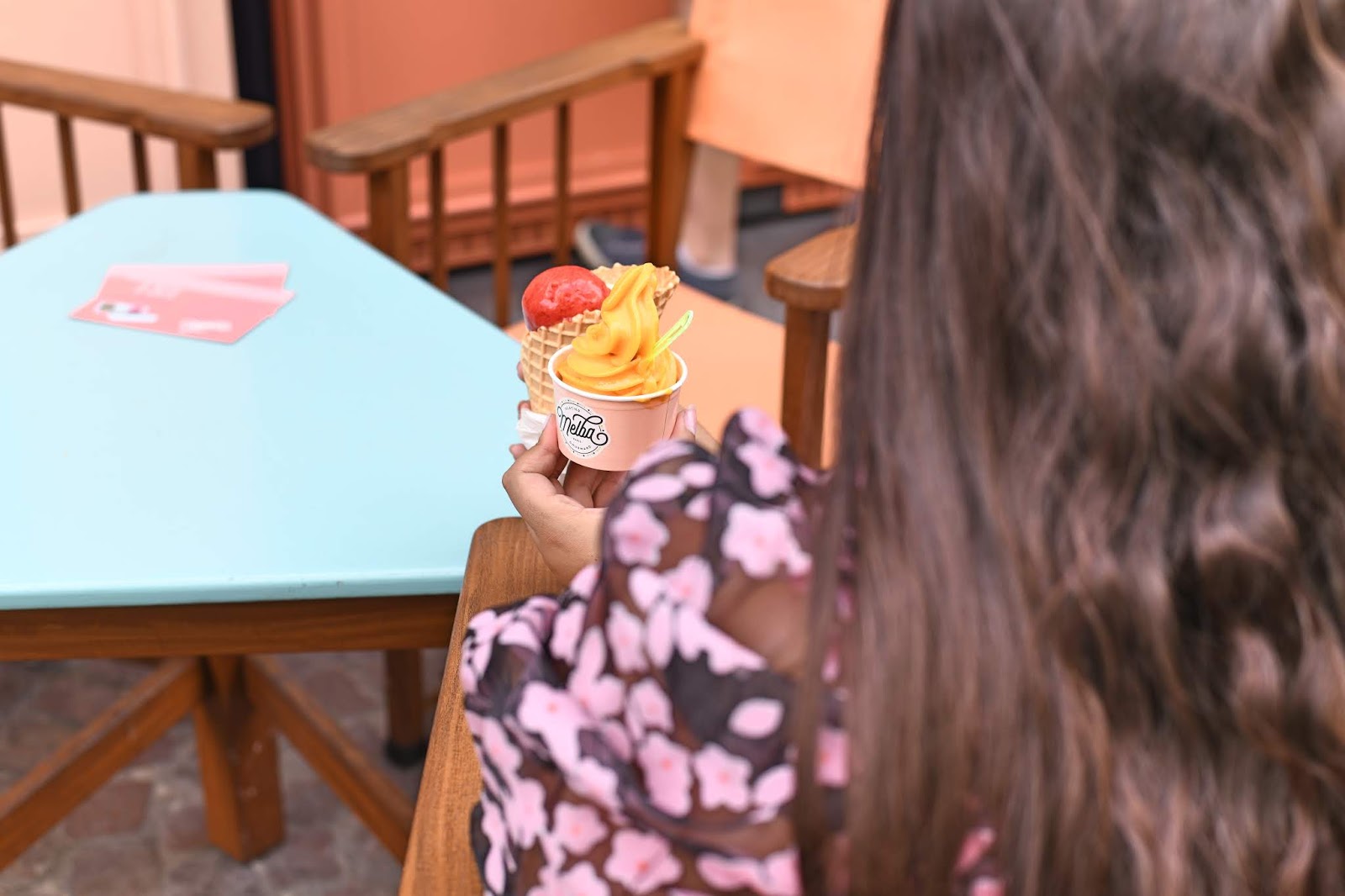 Depuis son ouverture en juin 2016, Melba Glacier a deux adresses parisiennes : l’une à Bonne Nouvelle, l’autre à Etienne Marcel. On peut déguster les glaces soit dans un petit pot ou dans un cornet croustillant. Le goût est vraiment unique grâce à une fabrication à partir de purée de fruit de saison le plus souvent. La texture est ferme et c’est tout simplement excellent, il n’y a pas d’autre mots, on mange un fruit glacé et c’est tout ce que j’aime dans une glace ! C’est une glace pure sans ajout de sucre, ou de quoique ce soit d’autres. Je vous recommande la mangue qui est un pur délice, ainsi que la fraise et la framboise, des parfums classique mais parfait pour les amateurs de glaces. Le goût est intense pour la glace italienne, c’est vraiment délicieux. Un conseil, foncez !