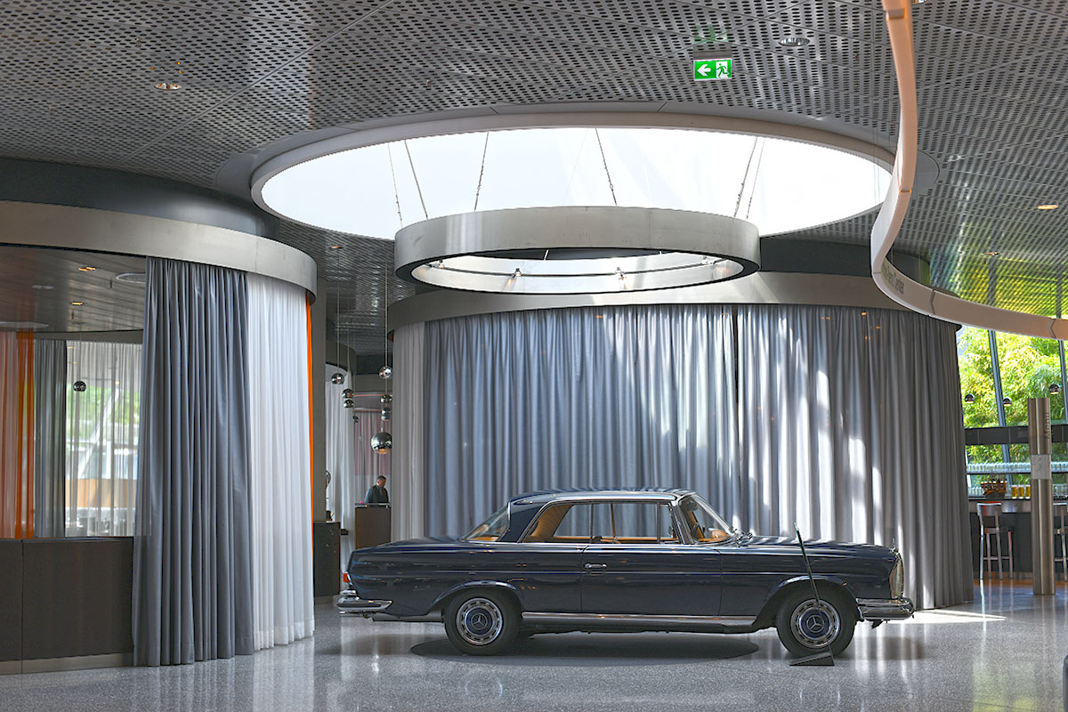 Écrin de plus de 16, 500 m² entièrement dédiés au constructeur allemand, le Musée Mercedes-Benz a été conçu par les architectes néerlandais Ben Van Berkel et Caroline Bos de l’UN Studio. Ce bâtiment à la façade de verre et d’aluminium est situé à Stuttgart outre-Rhin. Les courbes, les droites avec aucun droit, mais aussi des marches, des volumes, une lumière et aussi parfois de la couleur. Le va-et-vient de petits ascenseurs est futuriste. À l’intérieur du musée, une double spirale se déroule en pente douce autour d’un atrium, haut de 42 m, la suivre, c’est revivre plus de 100 ans d’une histoire de l’industrie automobile, du premier modèle de Carl Benz, breveté en 1886, jusqu’à nos jours. Le design architectural est une scénographie très soignée servant d’écrin à de très nombreux modèles qui retracent l’histoire de la célèbre firme automobile, de l’évolution des techniques et des modes au fil du temps. Les voitures de course, rallye ou même Formule 1 sont présentés. Il y a même le bolide de Lewis Hamilton, champion en 2008.