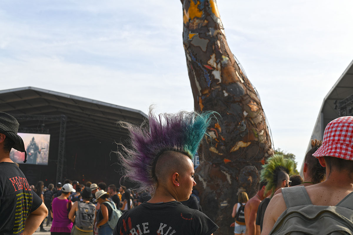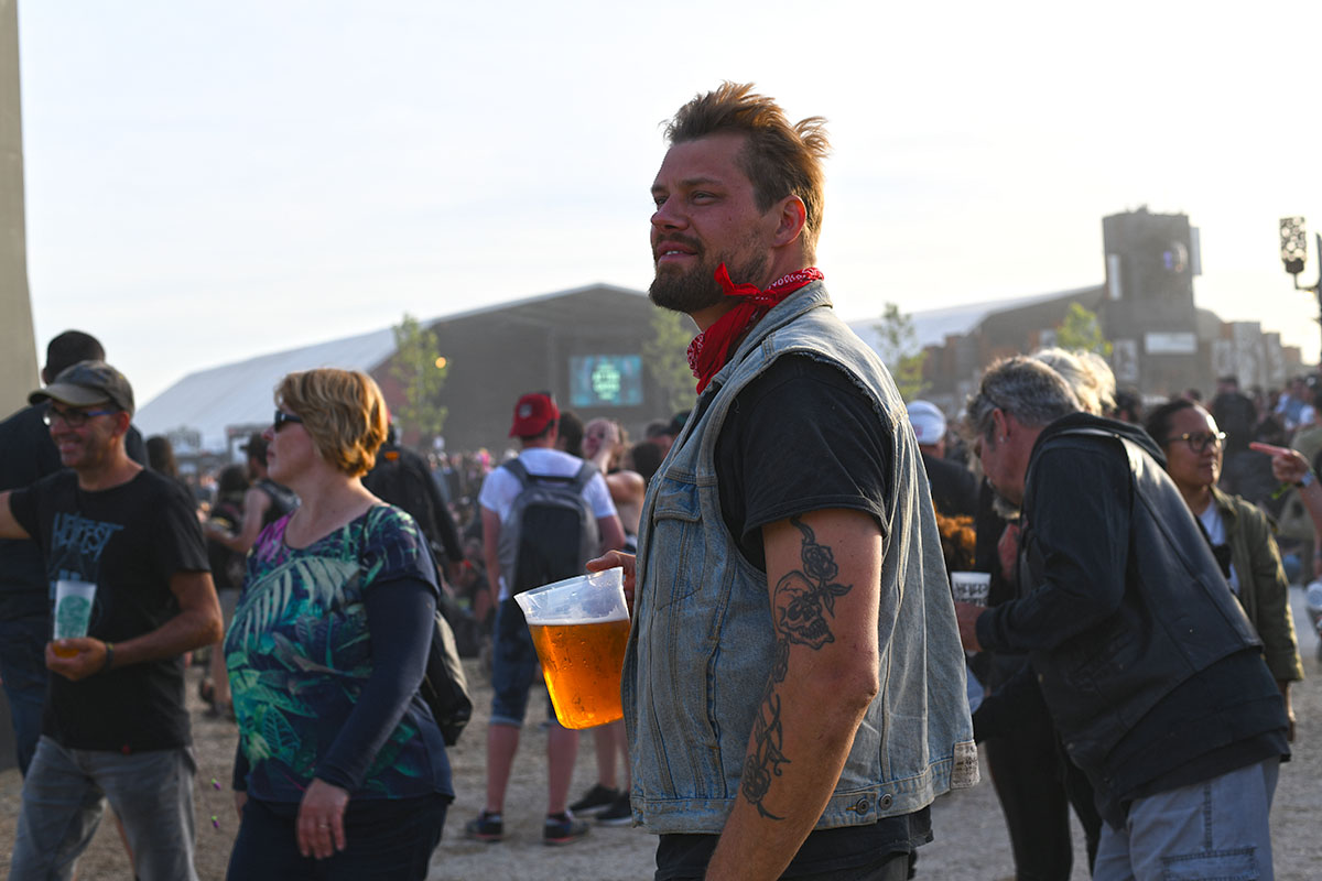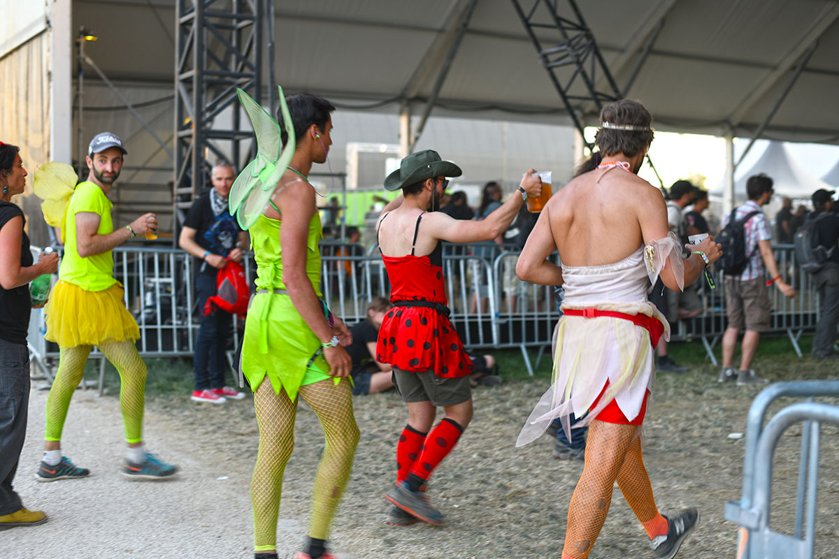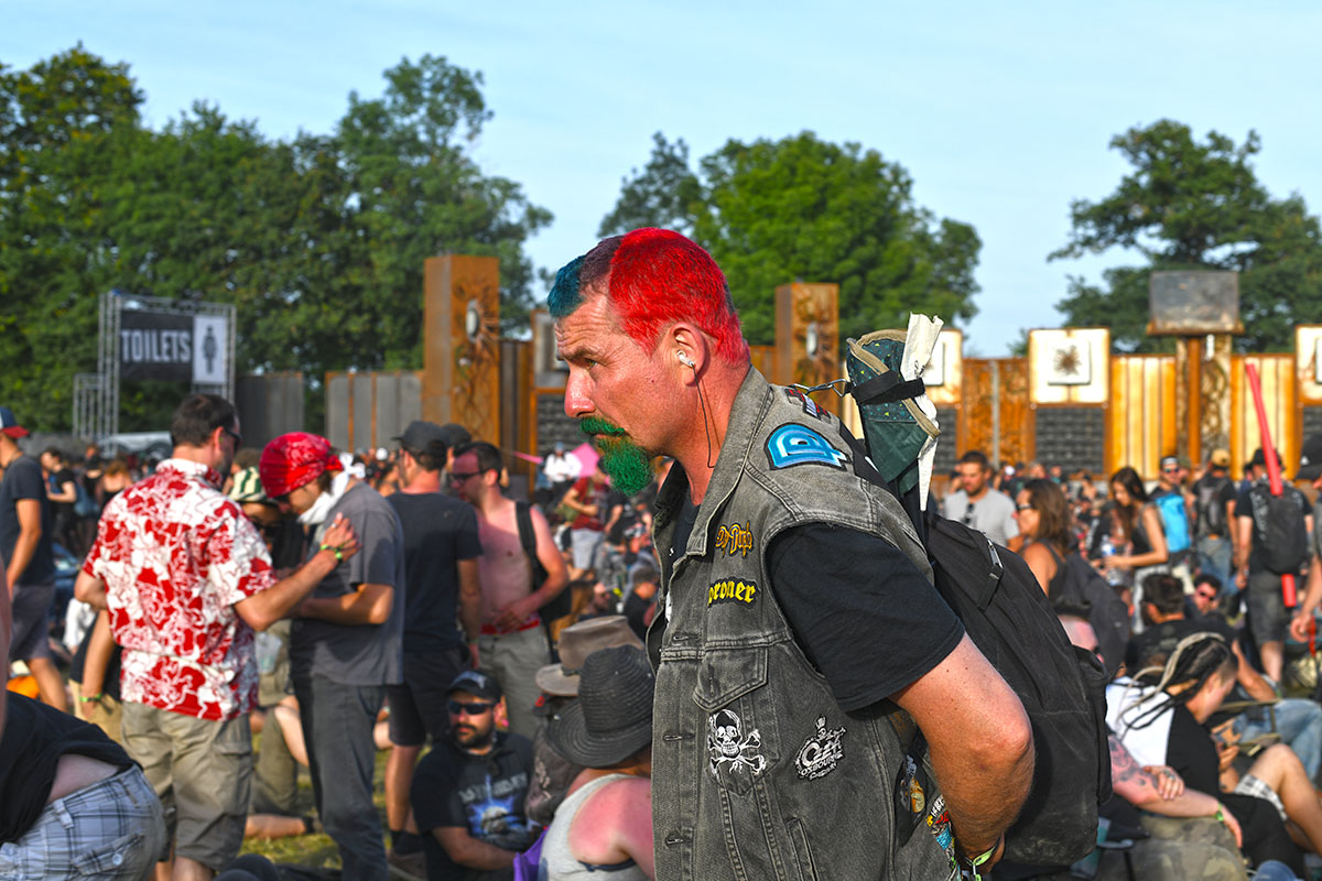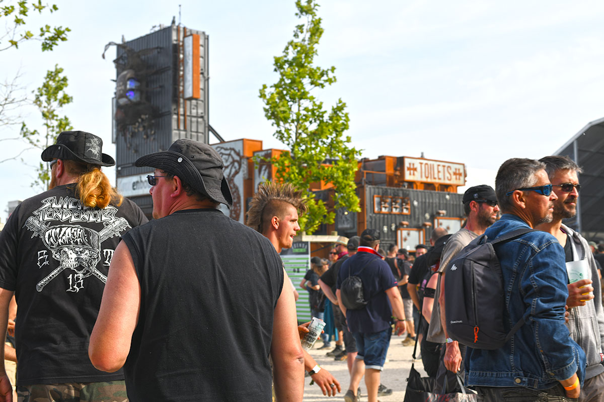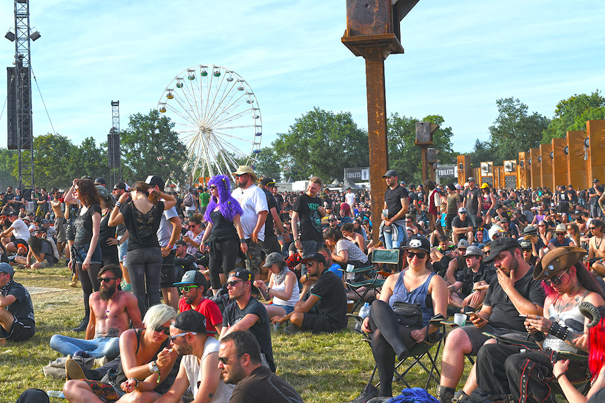 Des dizaines de milliers de métalleux et d’amateurs de musiques extrêmes se sont retrouvés vendredi en « pèlerinage annuel » à Clisson, (Loire-Atlantique). C’est un très grand show, plus que de la musique c’est un vrai spectacle vivant qui s’enchaîne pendant tout le week-end : pyrotechnie, en plus d’un décor digne des plus grands parcs d’attractions. Containers servant de bars, guitare à l’entrée, croix et sculptures géantes, tout est en métal, à l’exception de quelques bancs en forme d’os et de poubelles têtes de morts en pierre. Les festivaliers en prennent pleins les oreilles mais aussi pleins les yeux pendant ces 3 jours de rêve. Ils sont aussi acteur de ce festival, des jeunes, des moins jeunes, habillés en noir, déguisés, maquillés vêtu des traditionnels tee-shirts noirs à l’effigie de gloires du metal aux cornes à bière accrochées à la ceinture.