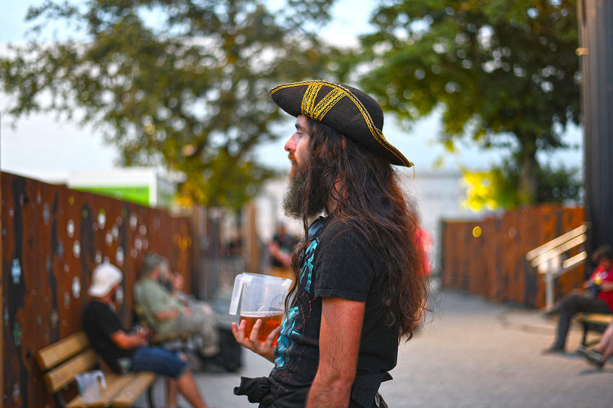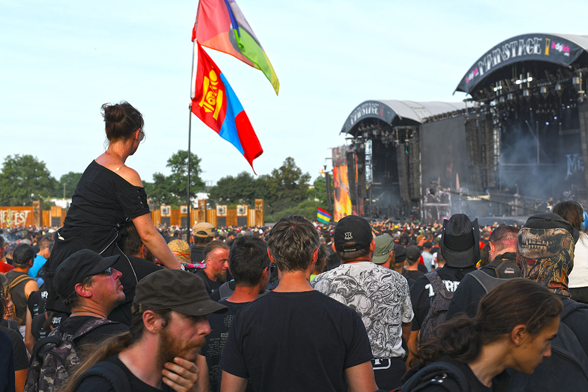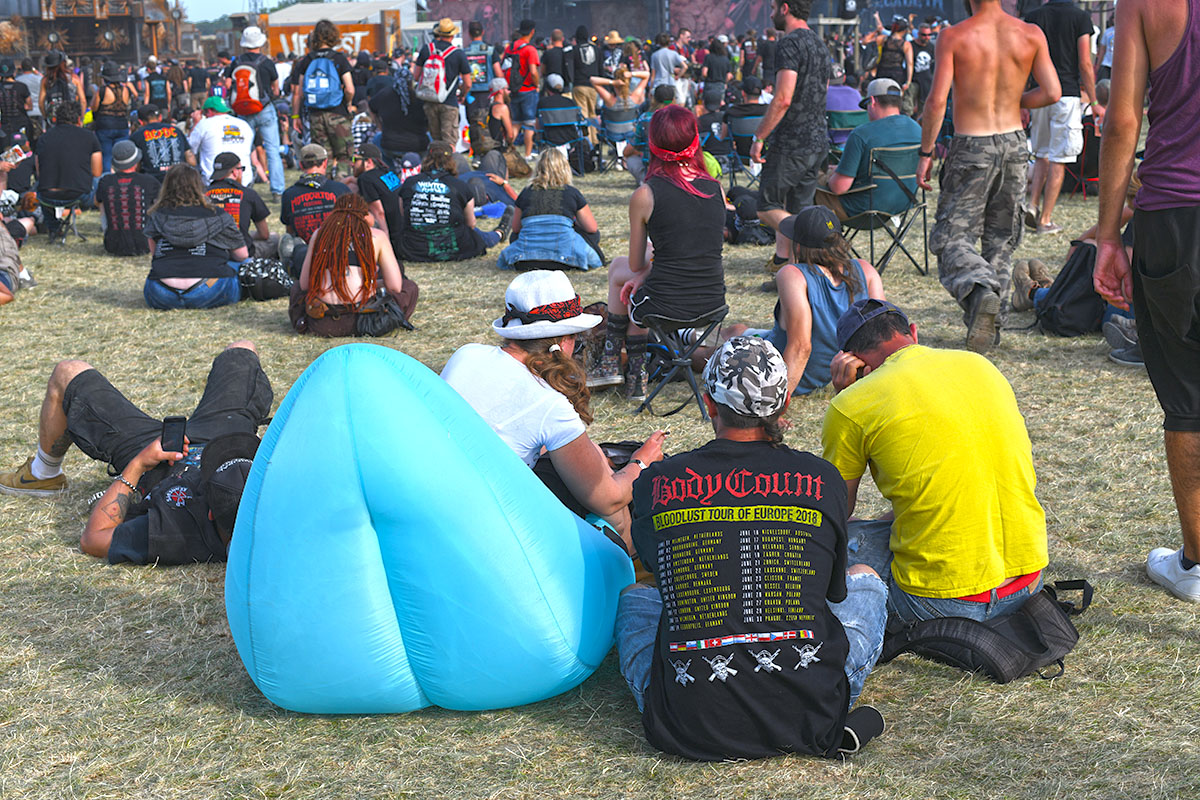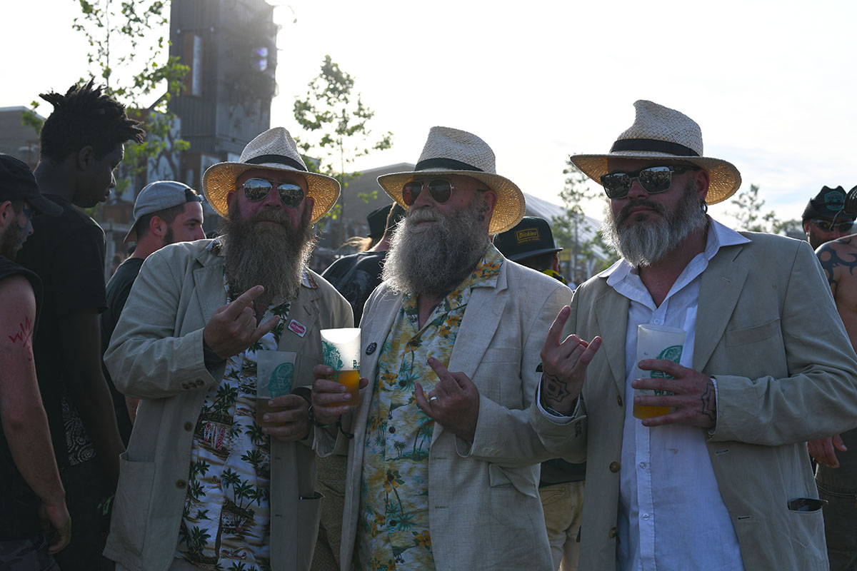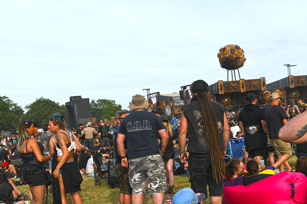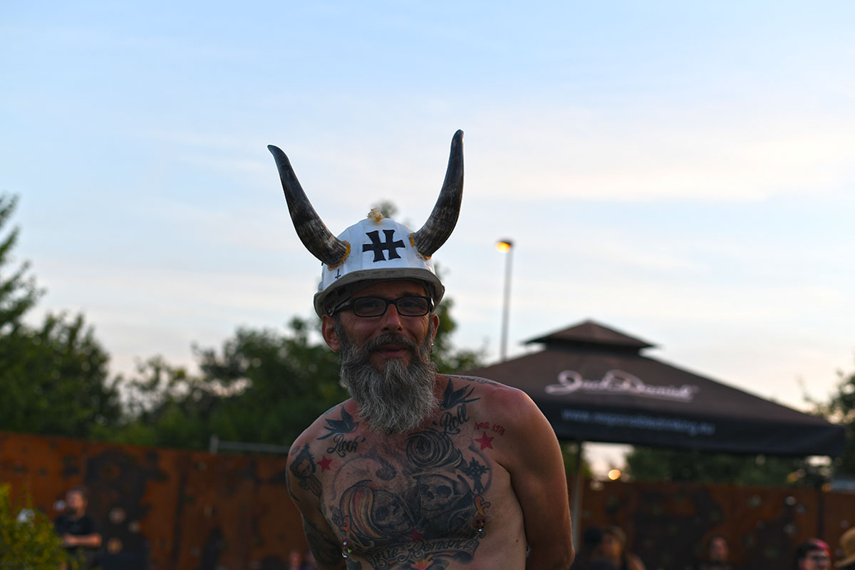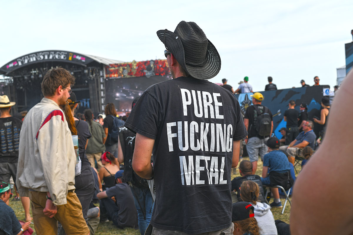 Des dizaines de milliers de métalleux et d’amateurs de musiques extrêmes se sont retrouvés vendredi en « pèlerinage annuel » à Clisson, (Loire-Atlantique). C’est un très grand show, plus que de la musique c’est un vrai spectacle vivant qui s’enchaîne pendant tout le week-end : pyrotechnie, en plus d’un décor digne des plus grands parcs d’attractions. Containers servant de bars, guitare à l’entrée, croix et sculptures géantes, tout est en métal, à l’exception de quelques bancs en forme d’os et de poubelles têtes de morts en pierre. Les festivaliers en prennent pleins les oreilles mais aussi pleins les yeux pendant ces 3 jours de rêve. Ils sont aussi acteur de ce festival, des jeunes, des moins jeunes, habillés en noir, déguisés, maquillés vêtu des traditionnels tee-shirts noirs à l’effigie de gloires du metal aux cornes à bière accrochées à la ceinture.