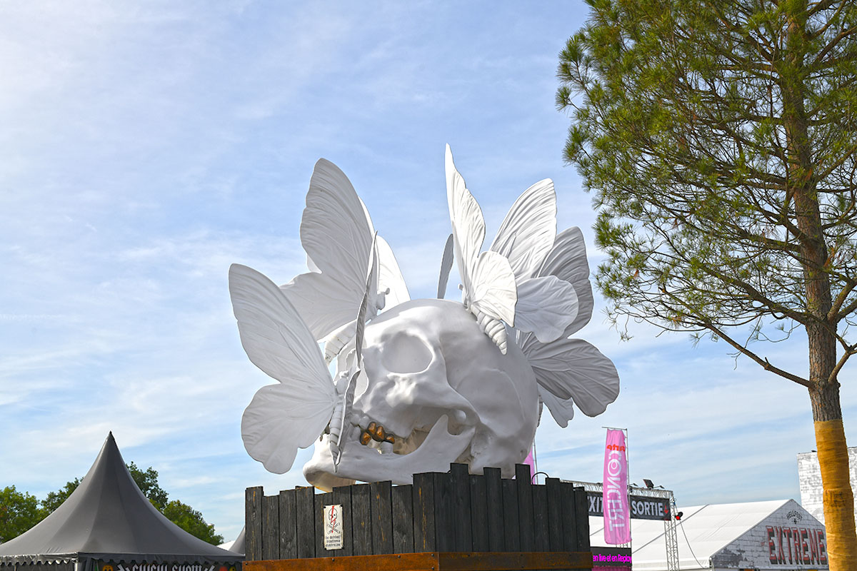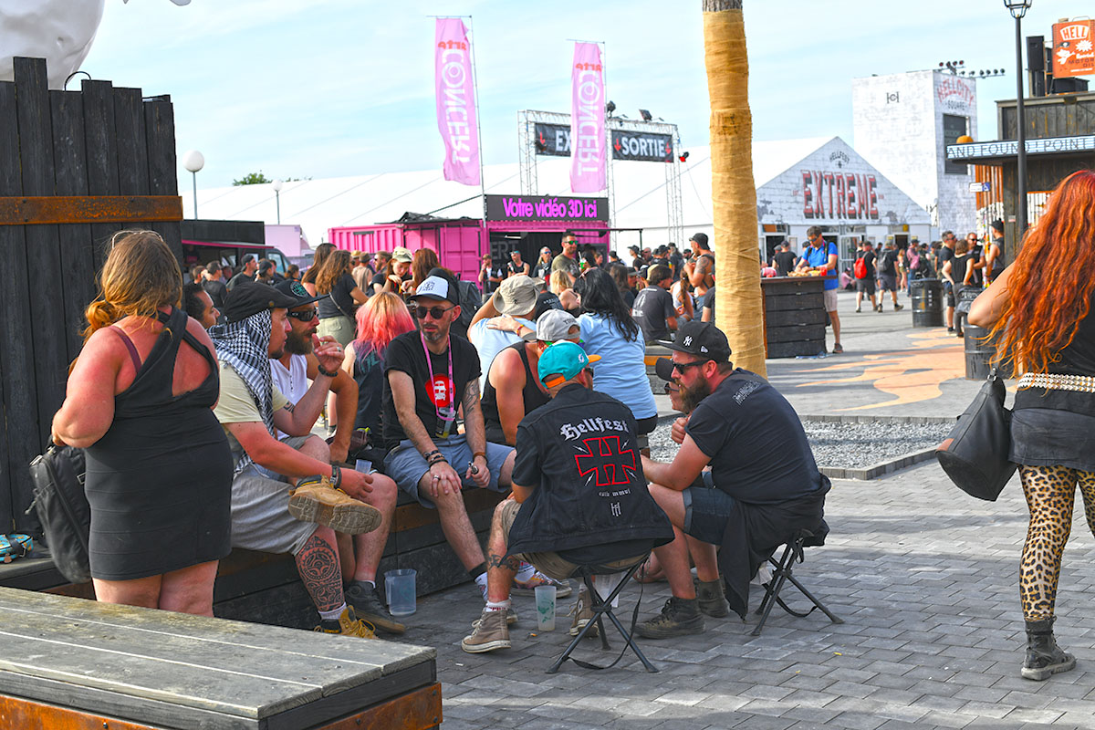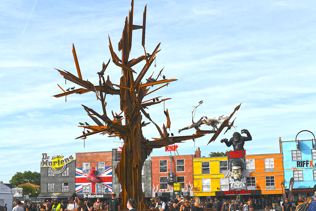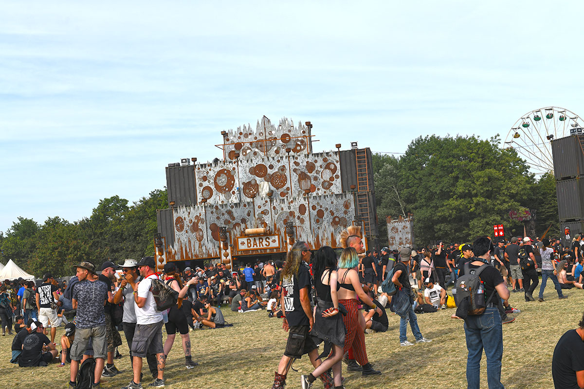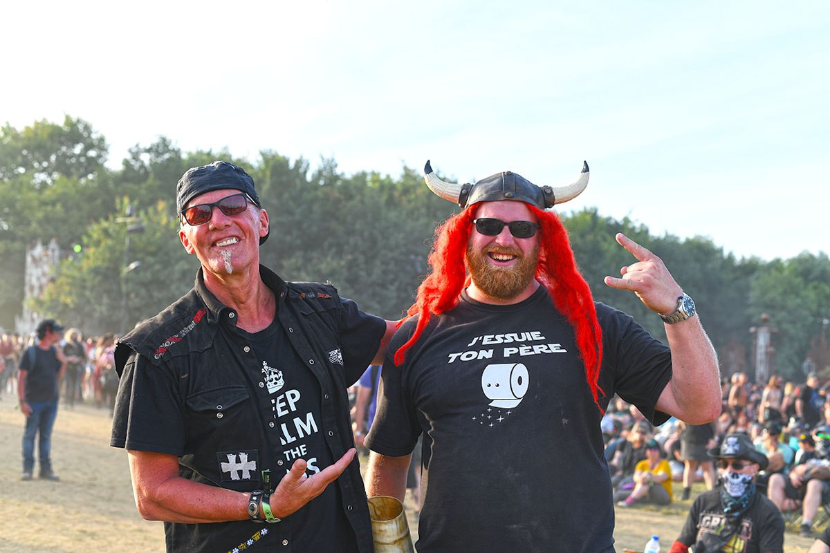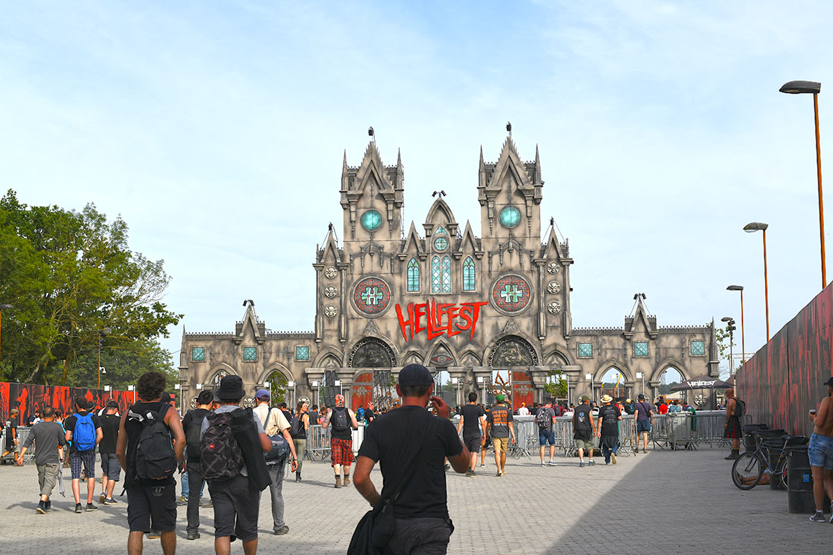 Des dizaines de milliers de métalleux et d’amateurs de musiques extrêmes se sont retrouvés vendredi en « pèlerinage annuel » à Clisson, (Loire-Atlantique). C’est un très grand show, plus que de la musique c’est un vrai spectacle vivant qui s’enchaîne pendant tout le week-end : pyrotechnie, en plus d’un décor digne des plus grands parcs d’attractions. Containers servant de bars, guitare à l’entrée, croix et sculptures géantes, tout est en métal, à l’exception de quelques bancs en forme d’os et de poubelles têtes de morts en pierre.  Les festivaliers en prennent pleins les oreilles mais aussi pleins les yeux pendant ces 3 jours de rêve. Ils sont aussi acteur de ce festival, des jeunes, des moins jeunes, habillés en noir, déguisés, maquillés vêtu des traditionnels tee-shirts noirs à l’effigie de gloires du metal aux cornes à bière accrochées à la ceinture.
