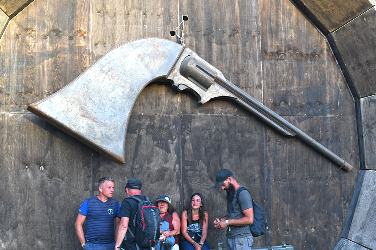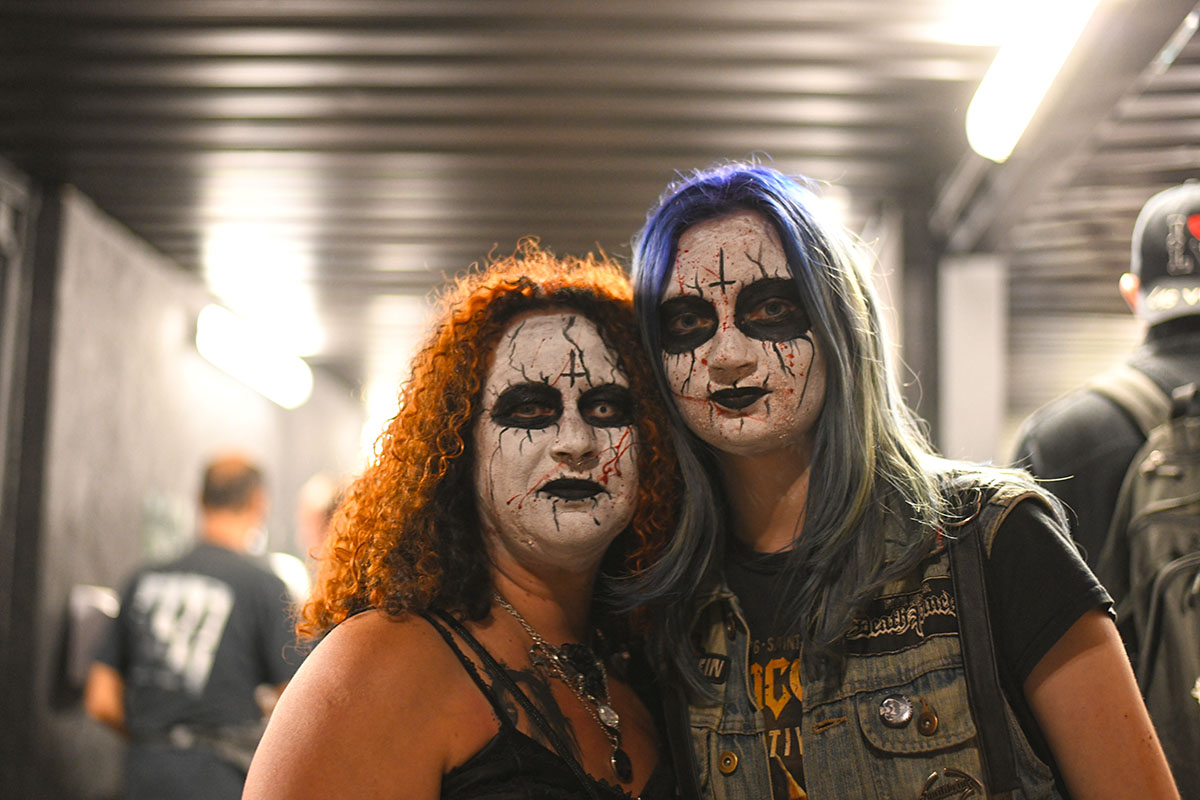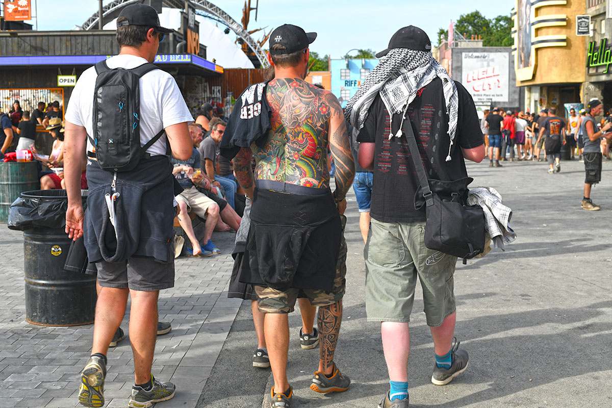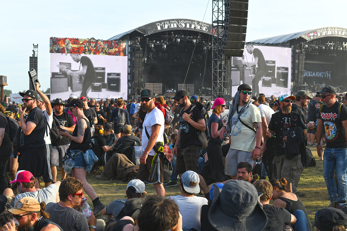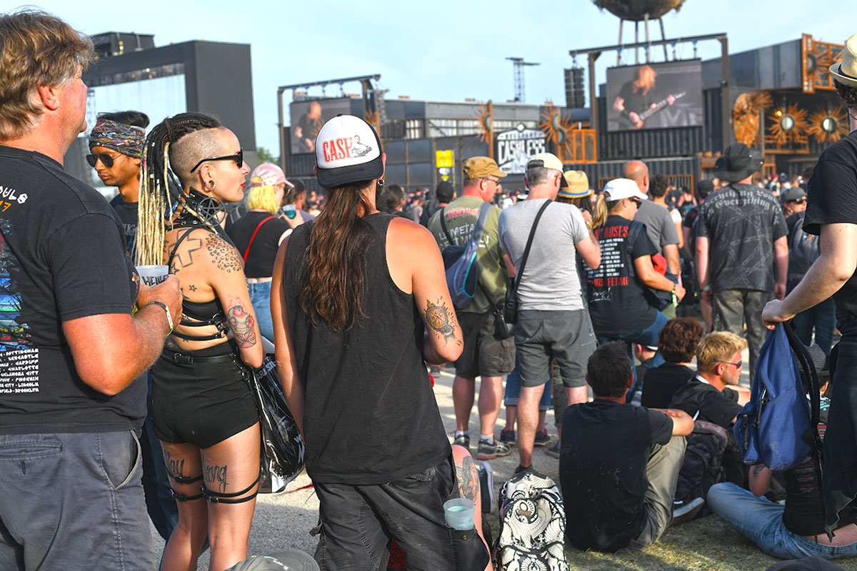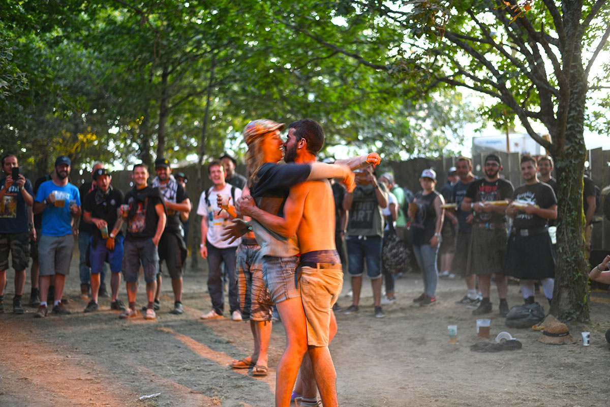 Des dizaines de milliers de métalleux et d’amateurs de musiques extrêmes se sont retrouvés vendredi en « pèlerinage annuel » à Clisson, (Loire-Atlantique). C’est un très grand show, plus que de la musique c’est un vrai spectacle vivant qui s’enchaîne pendant tout le week-end : pyrotechnie, en plus d’un décor digne des plus grands parcs d’attractions. Containers servant de bars, guitare à l’entrée, croix et sculptures géantes, tout est en métal, à l’exception de quelques bancs en forme d’os et de poubelles têtes de morts en pierre.  Les festivaliers en prennent pleins les oreilles mais aussi pleins les yeux pendant ces 3 jours de rêve. Ils sont aussi acteur de ce festival, des jeunes, des moins jeunes, habillés en noir, déguisés, maquillés vêtu des traditionnels tee-shirts noirs à l’effigie de gloires du metal aux cornes à bière accrochées à la ceinture.
