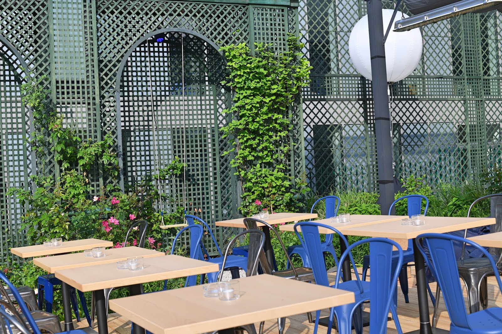 La brasserie éphémère est divisée de 6 espaces singuliers : la brasserie, le cœur de l’endroit ; le jardin et la terrasse, où il sera possible de se prélasser au soleil ; la tablée : une pièce qui accueillera des conférences en journée et des groupes le soir ; l’office : une salle de co-working dédiée aux projets de groupe, aux pauses business ou aux rendez-vous professionnels et le Bleu Club, un espace d’innovations entièrement bleu. Tout est fait pour prendre du bon temps !