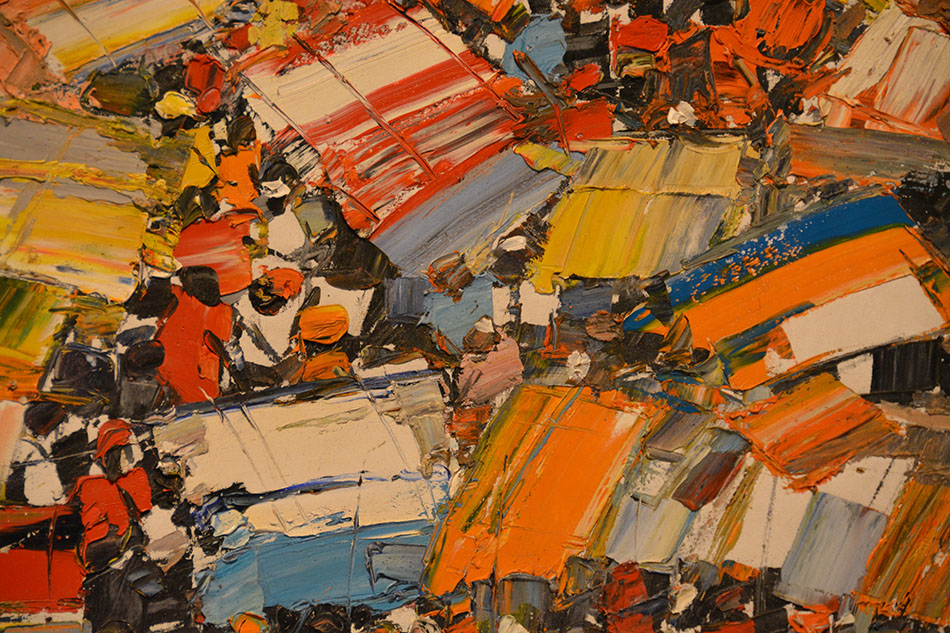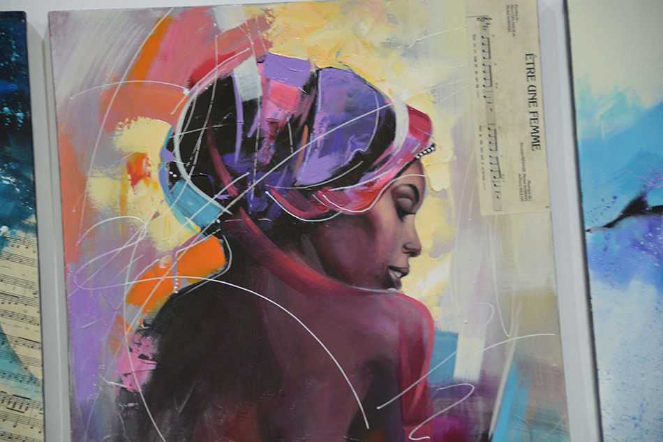 Ces 60 artistes venues d’ailleurs présentent leurs arts : Congo, Guinée Bissau, Algérie, Togo, Soudan, Burkina Faso, Mali, Tunisie, Mozambique, Angola, Maroc, Niger, Sénégal… Plusieurs personnalisés étaient présente comme Miss Gabon 2012 et Jean Barthelemy Bokassa ! Les toiles sont magnifiques et font rêver ! Les artistes de l’Afro-Expressionnisme font vivre la modernité de l’art africain, chacun avec un style différent. Mais ils ont tous en commun de souffler un nouveau vent artistique d’une Afrique nouvelle, contemporaine, enracinée tout autant qu’elle revendique le changement. Un vrai plaisir pour les yeux !