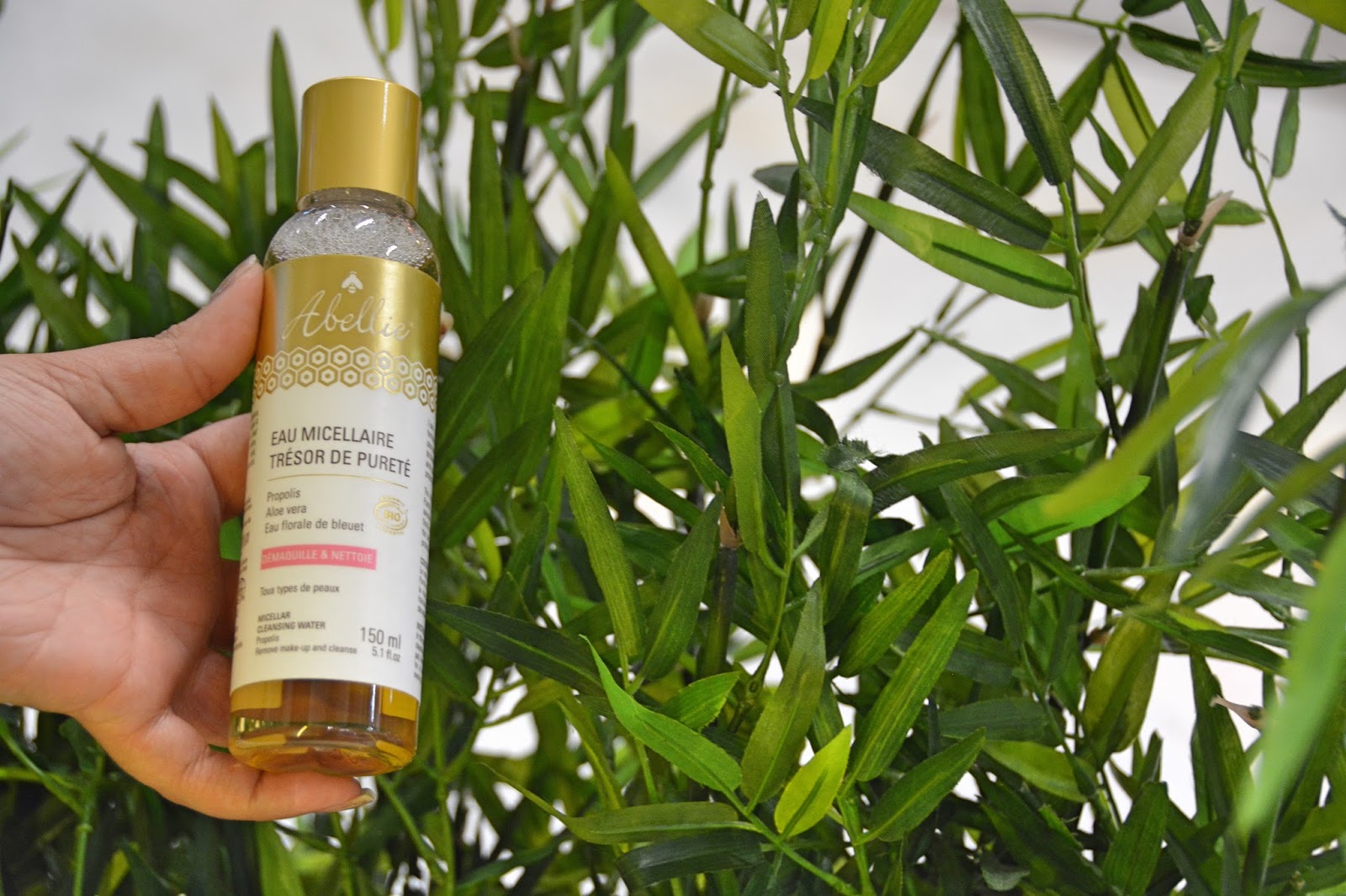 J’utilise l’eau micellaire pour un démaquillage doux. Elle est composée de propolis, d’aloe vera et d’eau florale de bleuet. Ce démaquillant bio est vraiment parfait, car premièrement, il peut être utilisé pour tout type de peau. Il n’agresse pas la peau. Sa meilleure qualité est qu’il démaquille en douceur et hydrate à la fois. J’ai une véritable passion pour les odeurs des produits Abellie, je crois, mais l’odeur de l’eau micellaire est très fraîche et florale et c’est tout ce que j’aime ! En conclusion, je suis conquise par ces trois produits qui sont de qualités et surtout bio. Le miel a une place de choix dans mon nouveau rituel beauté grâce à Abellie !