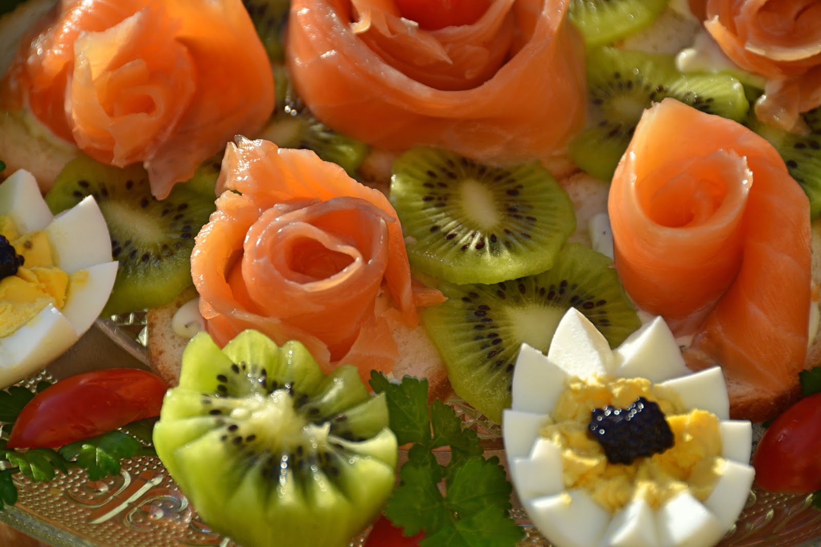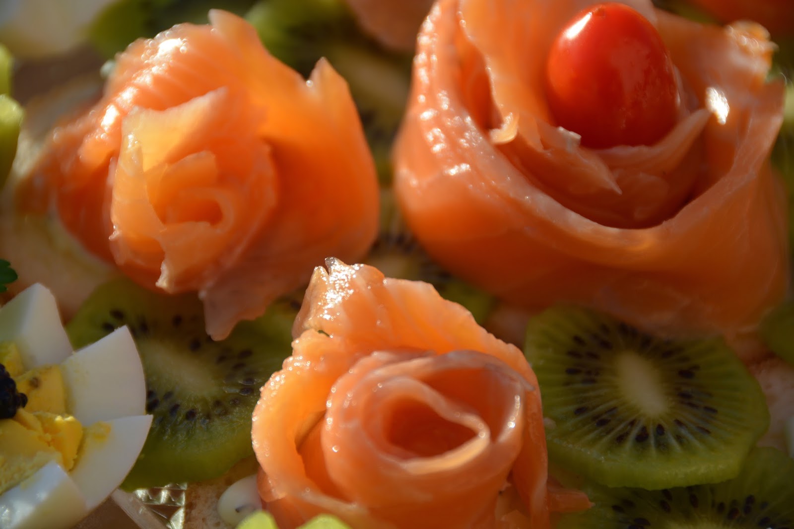 Préparation :Mélangez le fromage frais avec la crème fraîche. Pressez le 1/2 citron, ajoutez 1 cuill. à soupe du jus. Formez une rosace avec les tranches de saumon SaumonFrance.