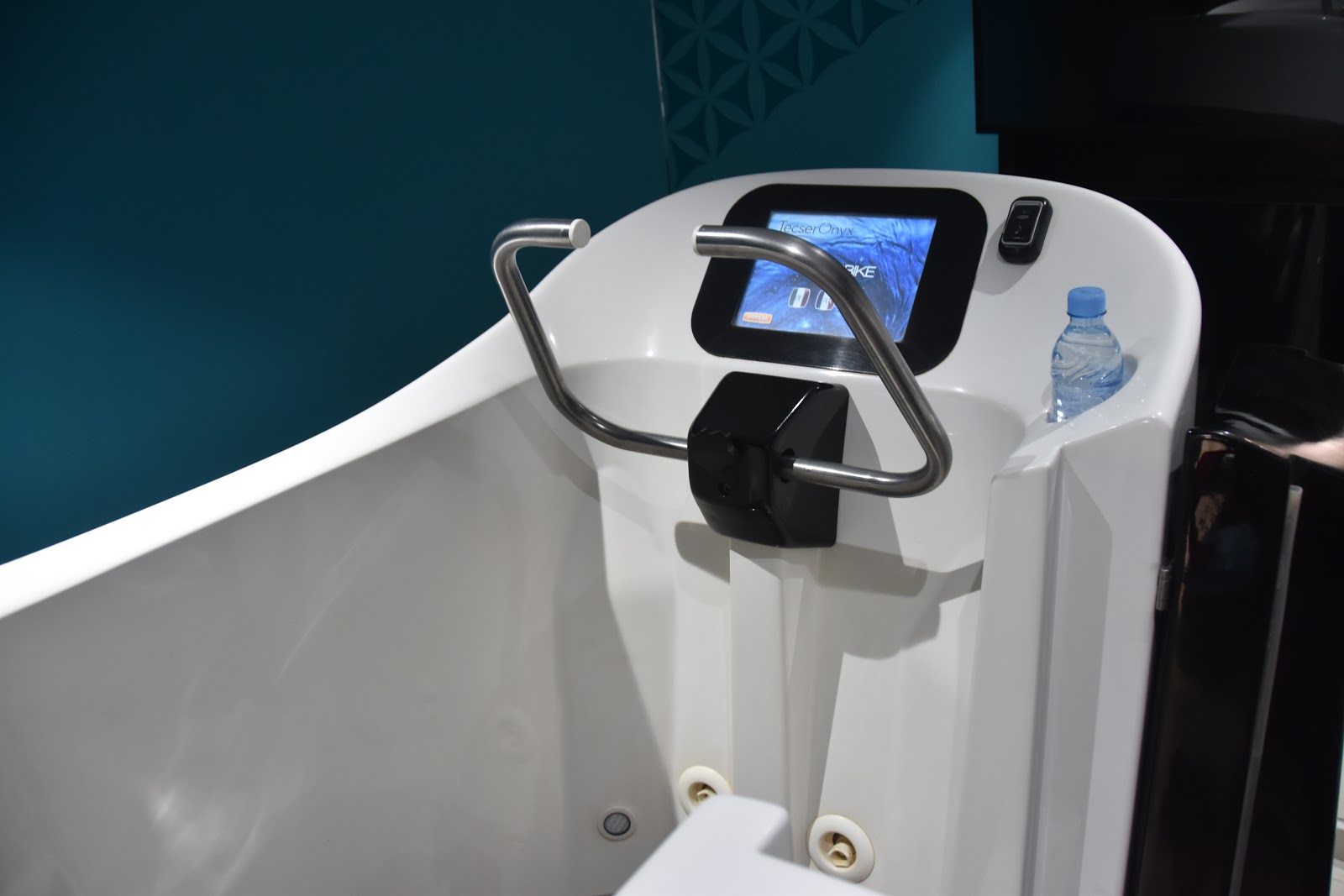 Premier centre de remise en forme et flottaison à Marrakech, Aqualine Wellness est un concept unique dans la ville rouge. Ce centre très chic et intimiste est situé en plein centre ville de Marrakech et procure une déconnexion totale et de la détente. L’idée est simple, vous relaxez intensément afin d’éliminer la fatigue, d’améliorer le sommeil ou même pour la préparation sportive. En effet, dans ce centre, il y a : Aquarin, Aquastep, Aquabike, bassin de flottaison. Ces appareils nouvelles génération sont idéales pour le renforcement musculaire, l’élimination de la graisse ou l’affinement de la silhouette. Je vous recommande l’Aquabike qui est vraiment parfait pour travailler en profondeur et tonifier les muscles. C’est bénéfique pour le corps, le cœur et l’esprit. Le petit plus c’est qu’après la séance ou le lendemain, on ne ressent aucune douleur ou courbatures ! L’eau prodigue un effet drainant grâce au passage de l’eau sur la peau, les bulles. Après la séance, on se sent toute légère et tout est pensé dans les moindres détails pour que votre séance se déroule parfaitement, que ce soit les cabines privatives, le programme personnalisé, la TV, le casque sans fil, les douches individuelles, les cosmétiques,le sèche-cheveux, l’espace beauté…