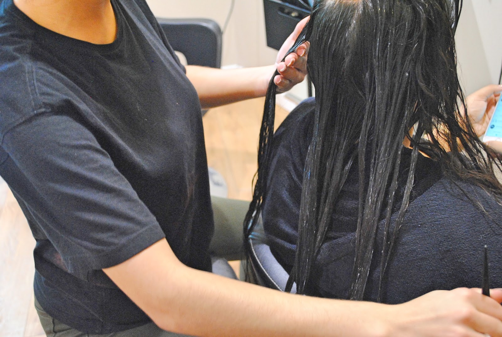 Après mon retour en France, j’avais besoin d’un véritable soin pour mes cheveux parce qu’avec le soleil, la mer, le sable, mes cheveux ont un peu souffert malgré mes soins réguliers. J’avais aussi envie d’un soin en profondeur. J’ai choisi d’aller chez Planète Beauté, c’est un salon de coiffure situé à Montrouge, au 49 avenue Pierre Brossolette. L’équipe est très sympathique et sera vous accueillir. J’ai choisi un soin Botox. Premièrement c’est un soin qui convient à tout type de cheveux et surtout c’est aussi pour les femmes enceintes ou celles qui allaitent car c’est un soin 100% naturel. Le soin se déroule en plusieurs étapes, après le lavage des cheveux avec un shampoing spécifique qui detoxifie et le rinçage, la coiffeuse applique le soin avec ses doigts pour faire pénétrer la substance. Ensuite, elle applique un film plastique sur vos cheveux et met en route le casque chauffant pendant 30 minutes afin que le soin pénètre bien dans les cheveux.