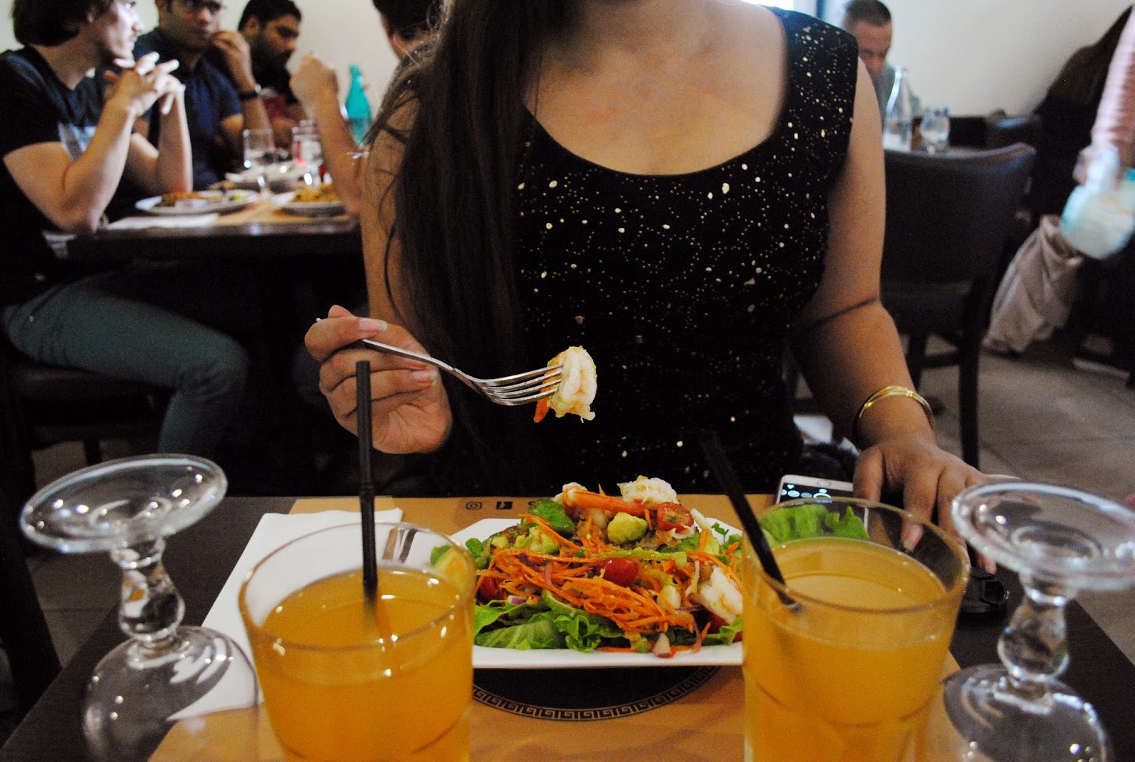 On a commencé par une entrée, j’ai pris une salade « Avocat/crevettes » composé d’avocats incroyablement bons et fondants et de crevettes délicieuses. Il y avait une petite sauce sucrée dans la salade que j’ai adorée. Mon homme a choisi le « Mix Thaï » composé de nems boeufs et de deux brochettes et des samoussas. J’ai gouté ses brochettes, elle était délicieuses, fondante et gouteuse à souhait. On est passé aux plats, j’ai choisi le « Croustillant » composé de poulet et de riz blanc. Une délicieuse assiette accompagnée de la petite sauce rouge qui est à tomber par terre.
