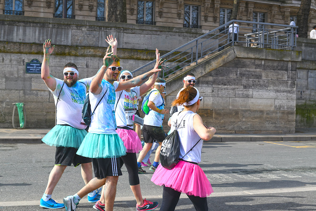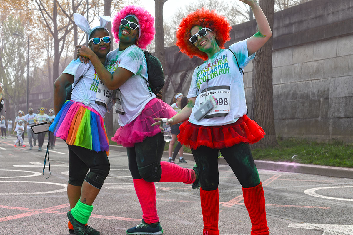 Pas de chrono, mais plutôt : couleurs, amusement, photos de souvenirs, et plaisir de courir ou marcher, selon le choix des participants, chacun a son rythme.