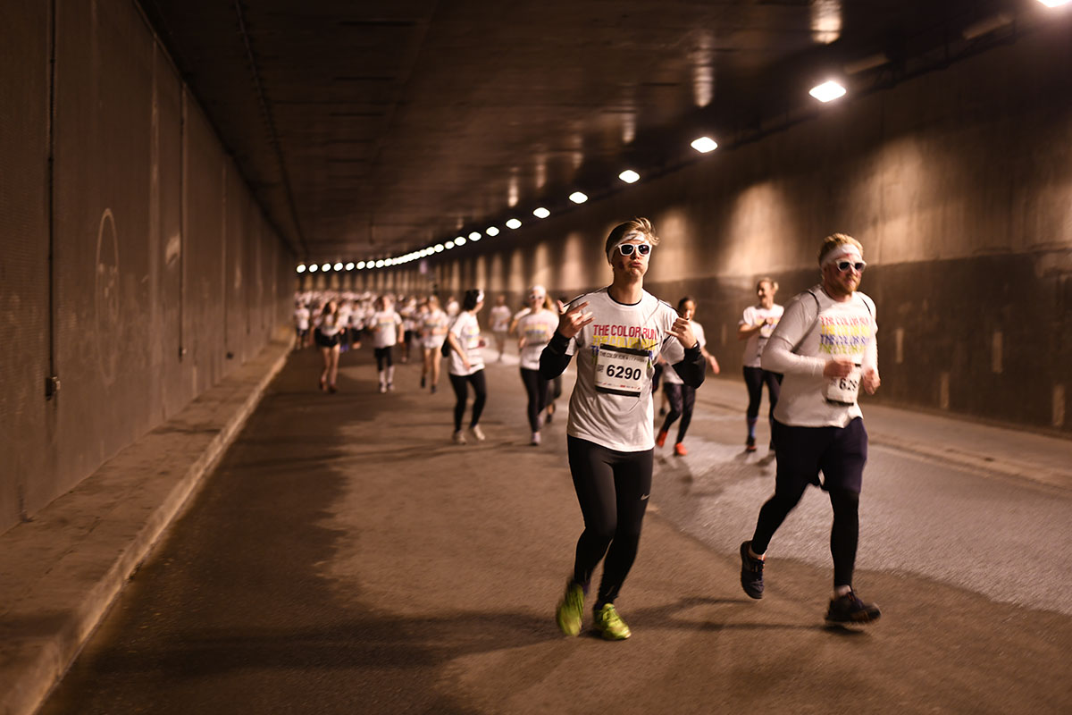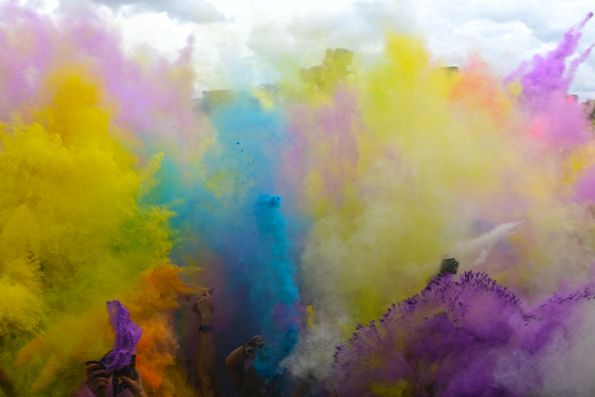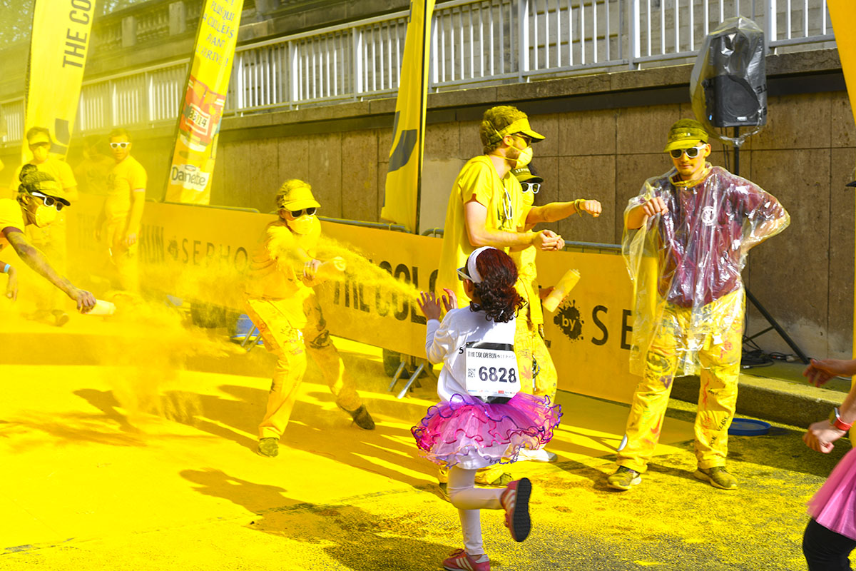 5 km très colorés dans la capitale, à chaque km, une projection de couleur lancer par des bénévoles qui se sont mobilisé pour faire vivre aux coureurs une expérience de dingue. Des poudres colorées (jaune, bleue, verte et rose) 100 % naturelles, à base de fécule de maïs .