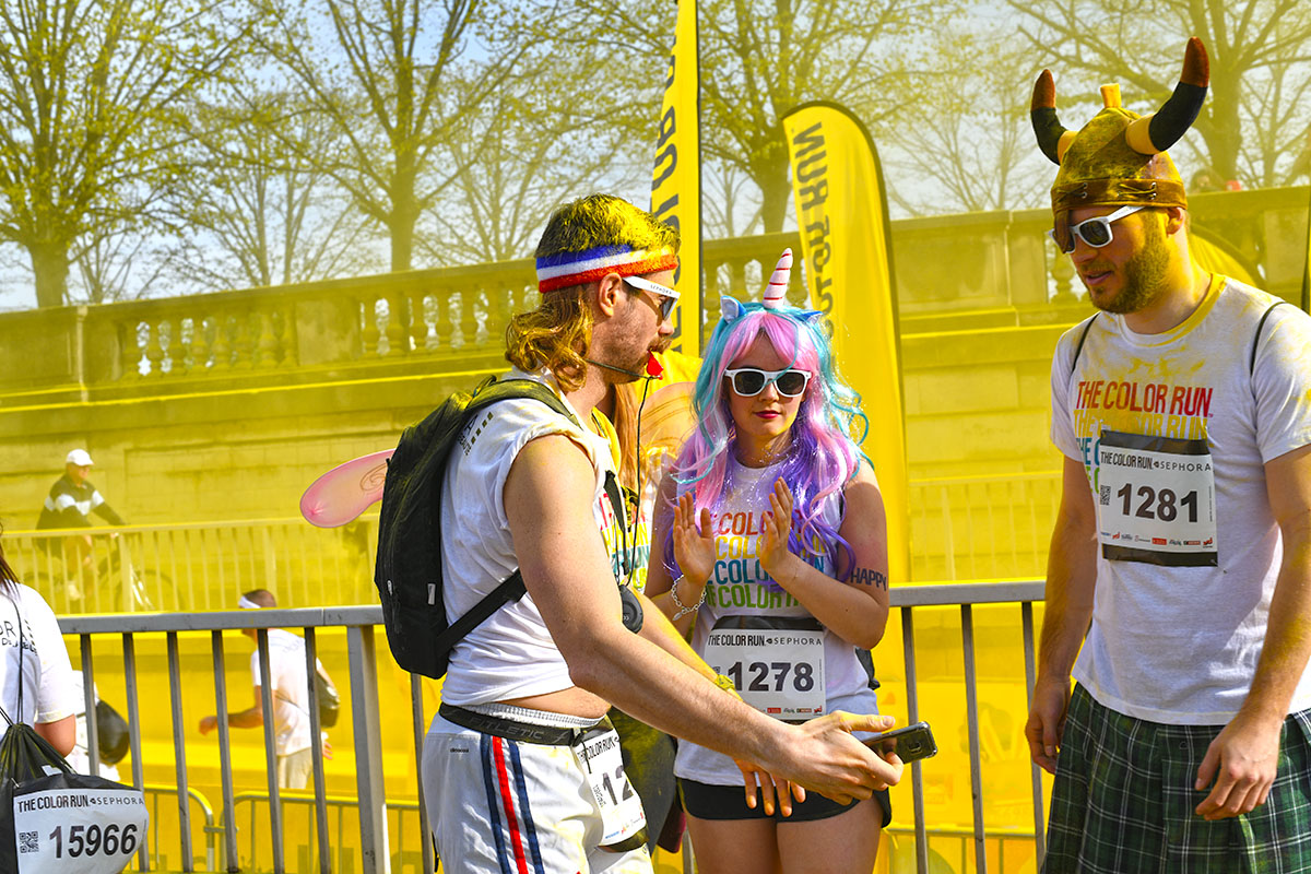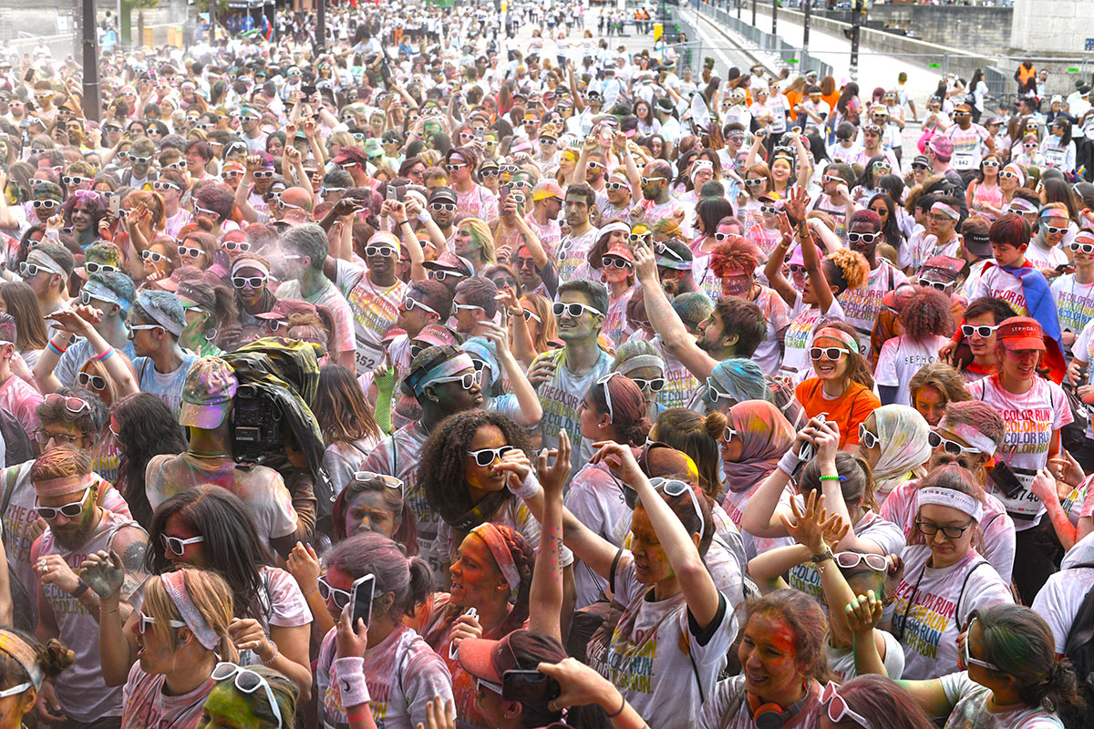 Cinquième édition à Paris de La course The Color Run la plus fun et colorée du monde. Dimanche 16 avril les participants, ont couru pour une bonne cause pour mettre ensemble, de la couleur dans la vie des malades, et aussi pour aider à financer la recherche, des maladies orphelines.