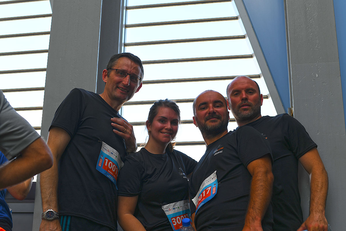Professionnels, et amateurs, ont Affronté ensemble, les 48 étages du plus haut building français ! 954 marches, dont le but est la solidarité au sommet à 230 mètres de hauteur. Défi réussi à 100%.