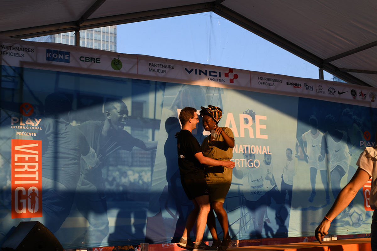 Le jeudi 24 mai 2018, à Paris La course VertiGo a pris ses quartiers pour la sixième édition à la TOUR FIRST, au cœur du quartier d’affaires de La Défense. La course Vertigo est 100% solidaire, les participations sont reversées intégralement à l’ONG PLAY International. Un défi sportif pour soutenir PLAY International qui se charge de développer des programmes d’éducation par le sport en France (dont Mayotte), au Burundi, au Kosovo, au Royaume-Uni et en Inde. PLAY International utilise le sport pour répondre à des problématiques variées comme l’égalité́ entre fille et garçon, le handicap, la prévention des maladies sexuellement transmissibles et la préservation de l’environnement.