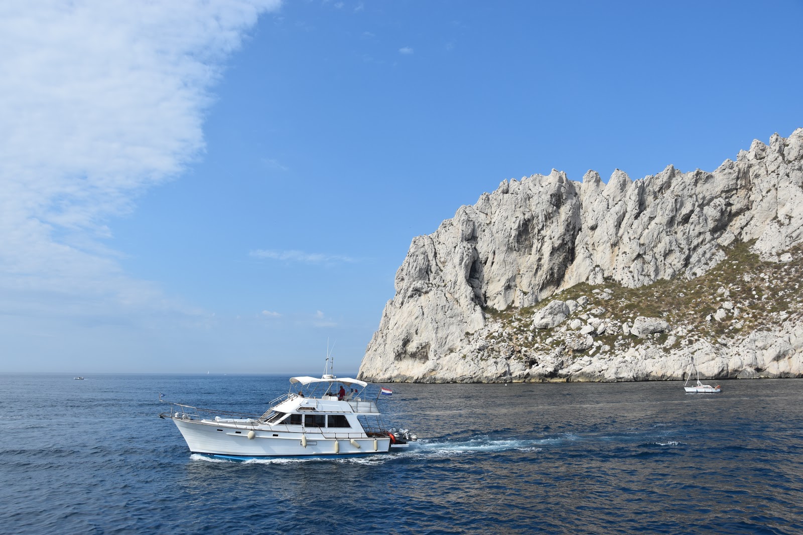 Embarquez à bord d’un bateau à Marseille et partez à la découverte des criques et archipels du parc national des Calanques avec Croisières Marseille Calanques. Le circuit intitulé « l’intégrale des calanques » permet d’observer, de contempler et d’être ébloui par les incontournables calanques de Marseille à Cassis, Sormiou, Morgiou, Sugiton et de découvrir les richesses naturelles, historiques du littoral marseillais (îles du Frioul, château d’If, Maïre, Riou …). Ceci en toute sécurité, en effet à bord, le personnel est sympathique, attentionné, avec des commentaires précis, concis, des conseils et toujours empreints d’humour « à la marseillaise » … C’est un moment très agréable en mer à la découverte des calanques de Marseille. Les panoramas sont tout simplement exceptionnels, il s’agit d’un site naturel incroyable ! Véritables trésors naturels, ces petits paradis ont préservé leur caractère sauvage grâce à l’étroite protection dont ils font l’objet. La balade est à la fois sympathique et majestueuse. La beauté de la nature est éblouissante de beauté. On est vraiment dépaysés de notre vie citadine. C’est une magnifique excursion, les paysages sont à couper le souffle !