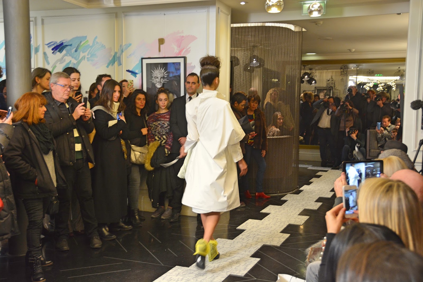 Ken Okada est une créatrice de mode japonaise qui a été diplômé du Bunka Fashion Collège à Tokyo comme Kenzo. En 2001, elle s’est installé à Paris et elle a reçu de nombreux prix prestigieux. Ces collections permettent d’habiller les femmes actives. Ce défilé coloré était surprenant et on sent que Ken Okada prend un virage mode plus audacieux. Loin de ses chemises géométriques, elle a signé une collection plus nébuleuse, moins sévères, plus extravagantes. La mode se veut créative, simple et spontanée et Ken Okada relève le défi, j’ai vraiment adoré les différentes robes longues. Bravo Ken Okada !