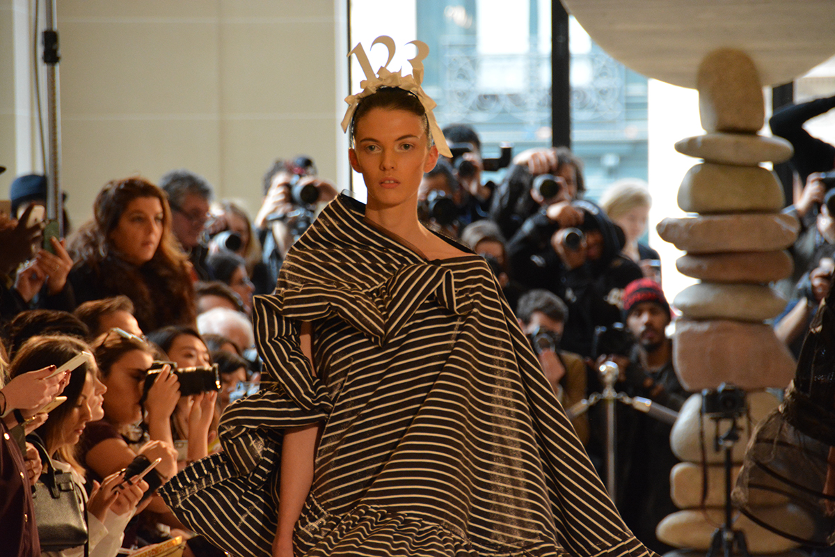 Cette collection couture est vraiment audacieuse, les volumes deviennent décaler et originaux. On remarque que les détails sont travaillés et soigneusement choisis, il y a un réel jeu de superposition des matières. Les différentes tenues, proposent une mode contemporaine. Ici, les tenues ont presque une valeur d’œuvre d’art, jolie concept.