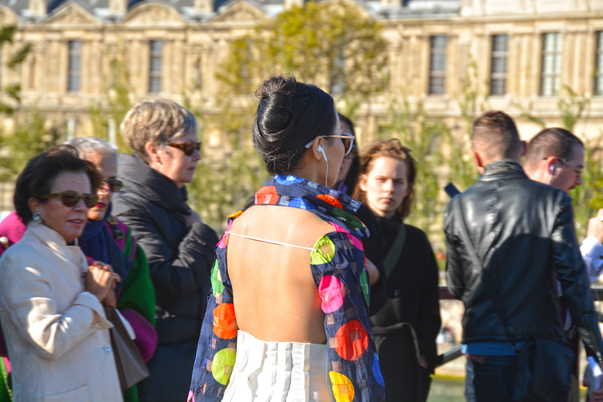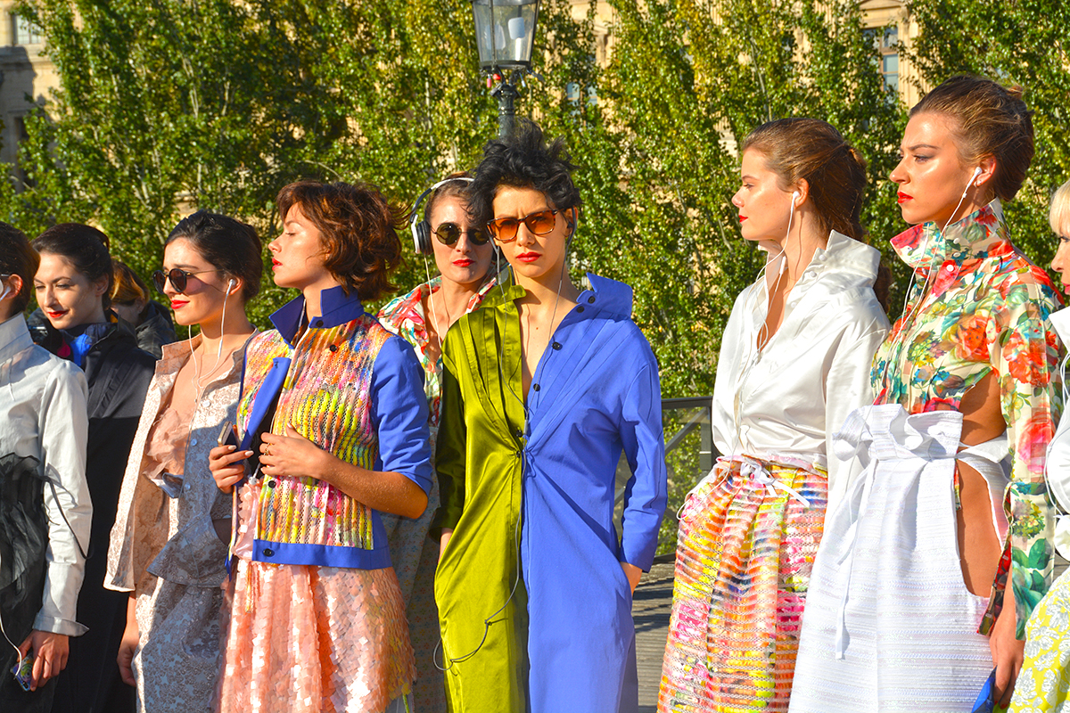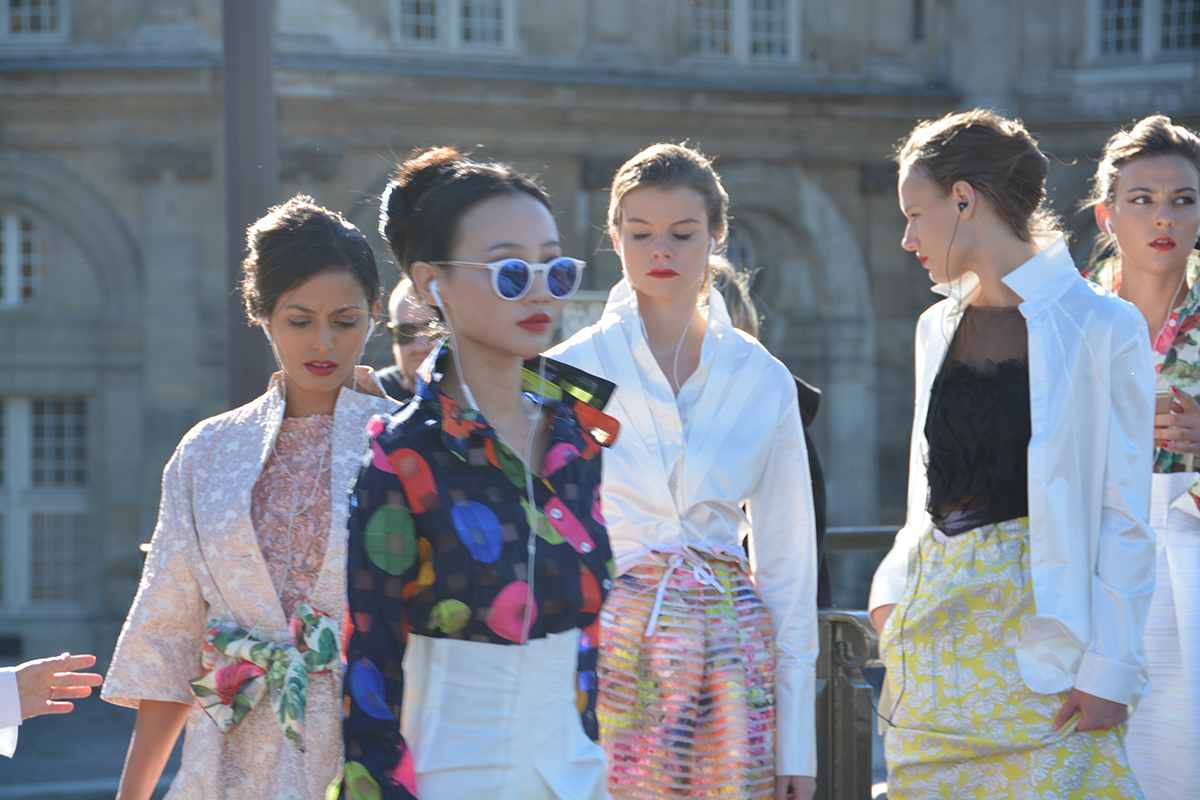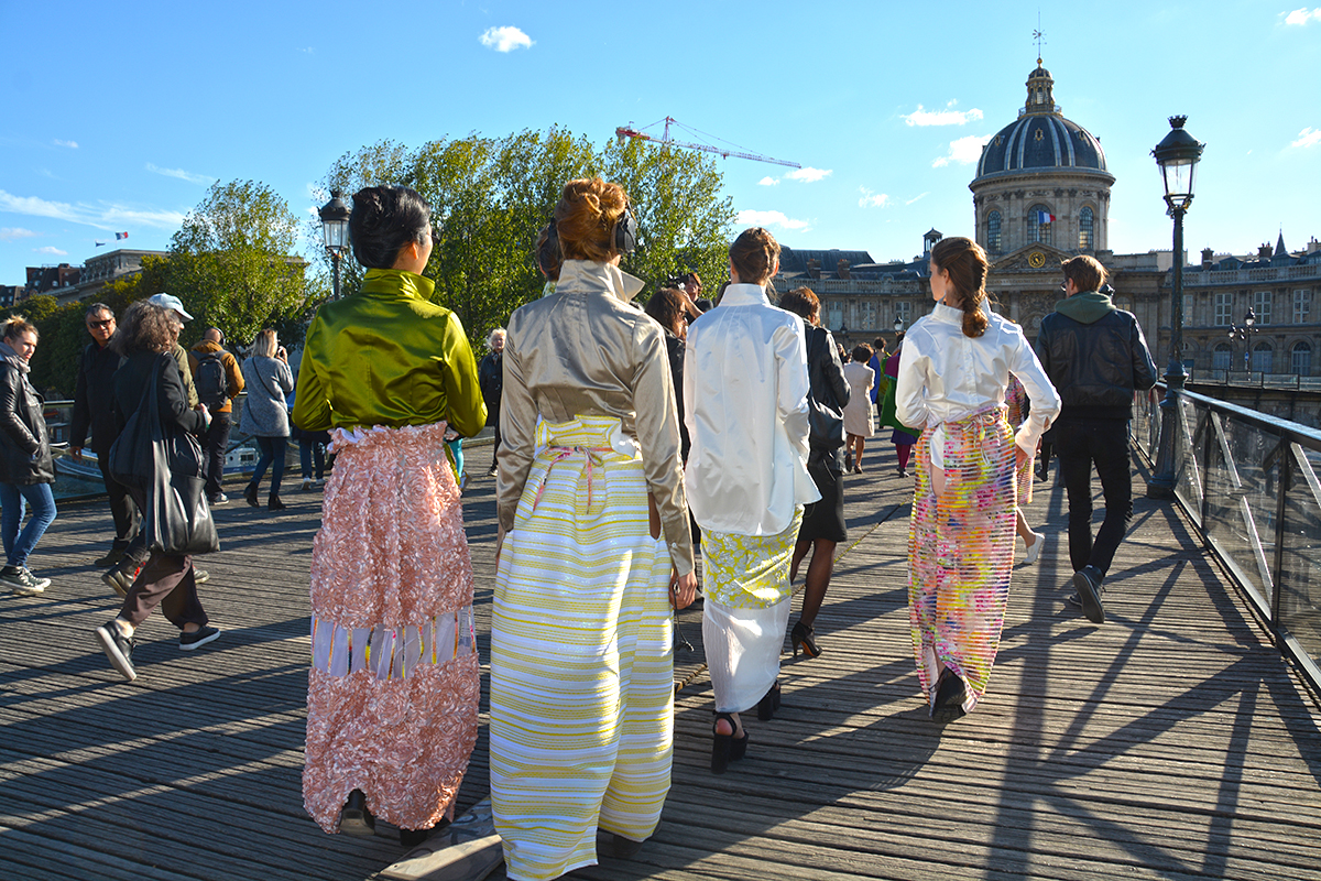 C’est un défilé totalement unique, atypique, originale sans musique, qui s’est déroulé le 6 octobre 2016. La musique était présente dans les casques des mannequins et du public. Les tenus sont très chics avec des magnifique dos nus fleuri qui révèlent la beauté et l’élégance parisienne. Les jupons sont vraiment incroyables. C’est une très jolie collection qui mélange les couleurs printanières et sublime par la même les légendaire chemise de la créatrice. Elle reflète par cette collection son amour pour Paris, la ville lumière.