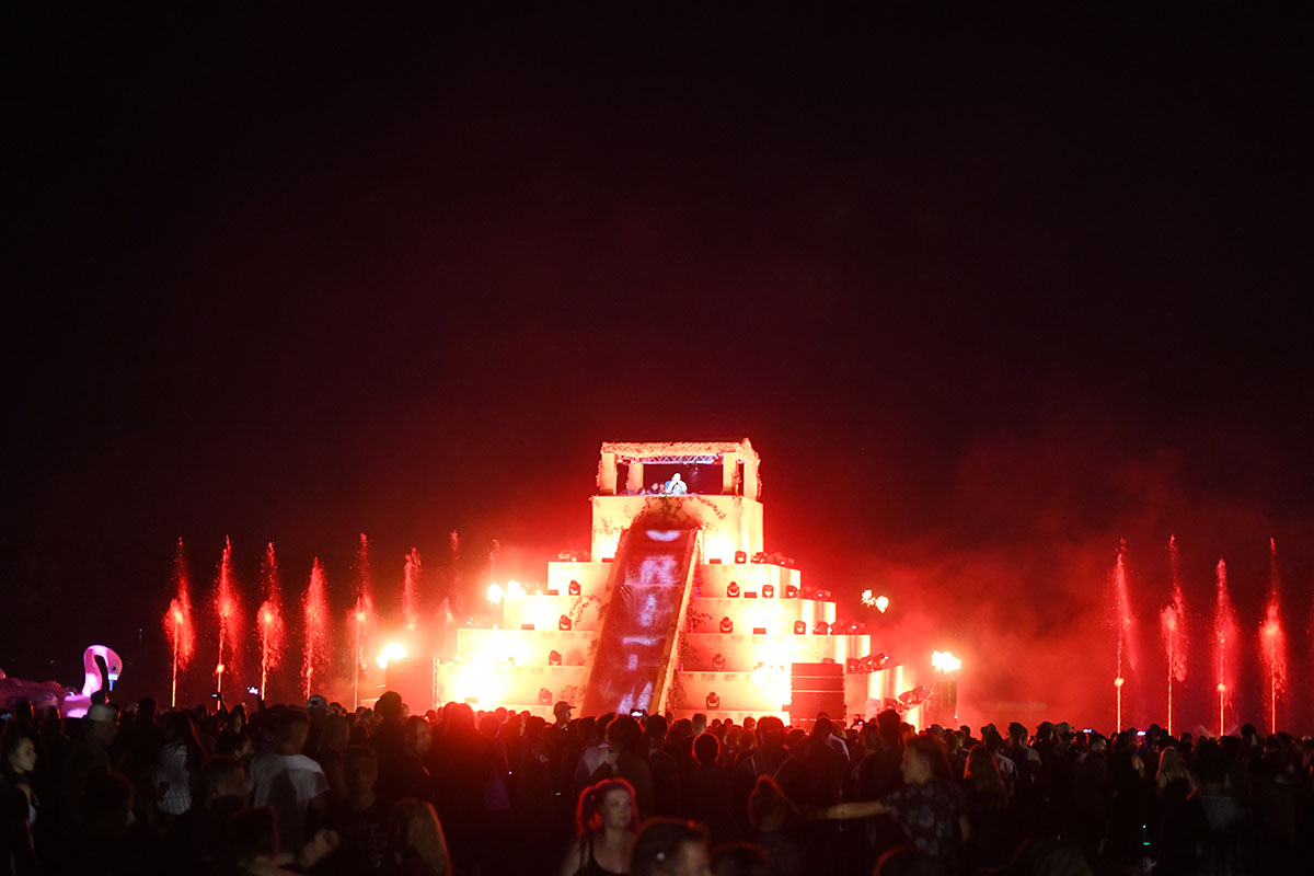 L’idée est simple vous faire voyager et vous faire échapper à la réalité le temps d’une incroyable soirée à Dürener. Le pari est totalement réussi, les festivaliers ont pu profiter d’une musique mêlant Trance, DNB et techno pour le plus grand bonheur ! Lors de cette édition, les DJ talentueux on enflammer les trois scènes, ASTRIX, CAMO & KROOKED, CHASE & STATUS, DJ RUSH, NEELIX, PENDULUM, REINIER ZONNEVELD, UMEK, sans oublier le duo incroyable VINI VICI, BJÖRN TORWELLEN, BLASTOYZ, DAY.DIN, DIMENSION, EARTHLING, FELIX KRÖCHER, HEDEX, KLAUDIA GAWLAS, MACKY GEE, MARIKA ROSSA, MAUSIO, RINKADINK, RITMO, ROCKY TILBOR, SASHA CARASSI, FALEX, GOURSKI, JAYCUT, KEVIN ARNOLD, NOGATA, REBKO et WACKELKONTAKT. Les trois scènes proposaient une scénographie incroyable avec une magnifique vue sur le lac et le sublime coucher de soleil ajoutait une touche particulière au spectacle. La scène principale était éblouissante grâce à la fantastique cascade. Nibirii nous a ébloui avec un jeu incroyable de lumières et d’effets spéciaux, des lancer de flammes fantastiques, des effets pyrotechniques et un son de haute qualité. Nibirii est une expérience à vivre absolument une fois dans sa vie !