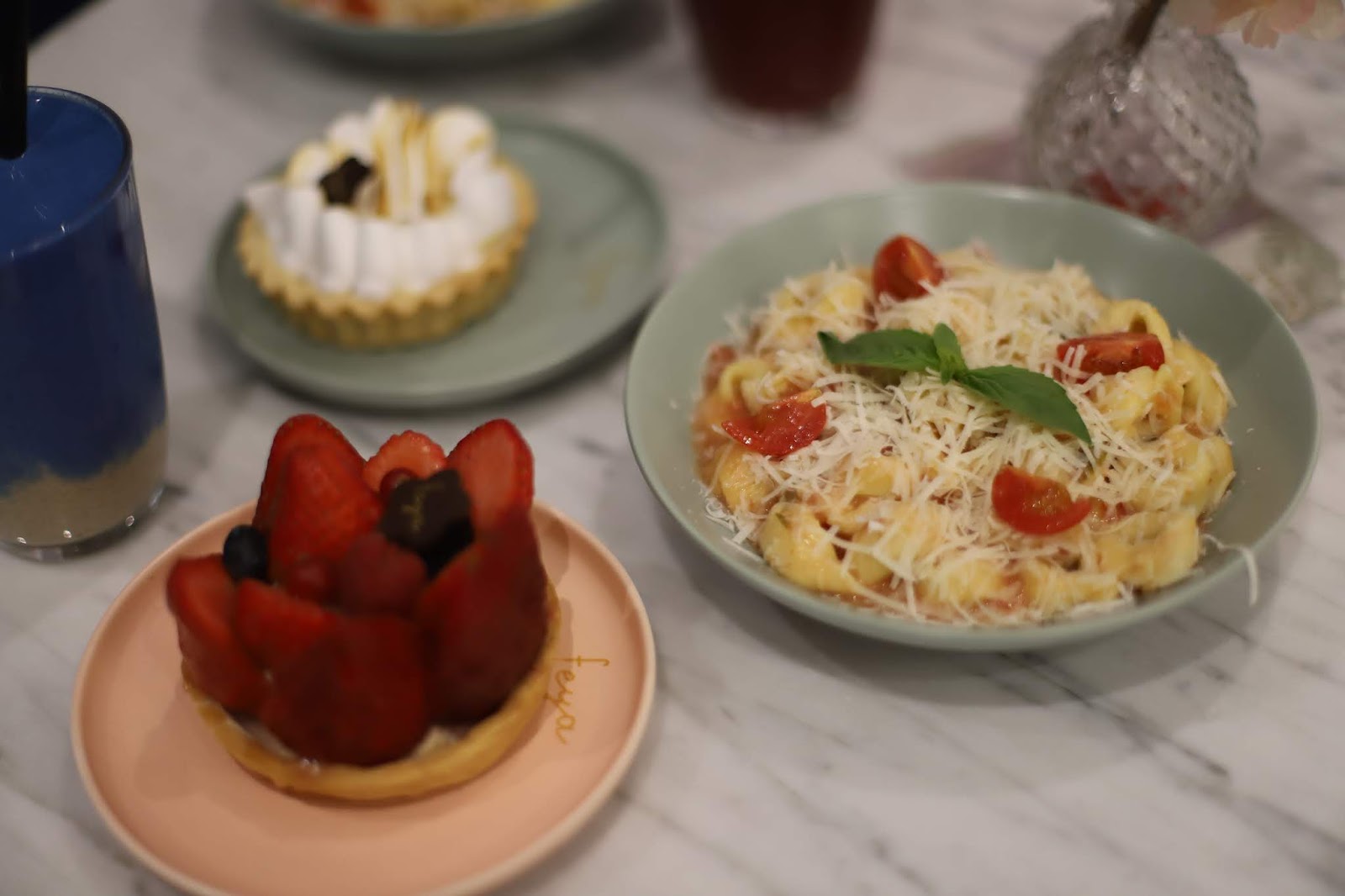 Coup de cœur à Londres pour ce restaurant atypique, Feya. Ce restaurant est idéal pour se délecter d’un délicieux repas. Le restaurant est si joliment décoré. De plus, les boissons sont mignonnes et originales. Le menu est varié et gourmand. Pour les gourmands qui adorent les pâtisseries, vous allez sûrement trouver votre bonheur. Nous avons découvert la formule brunch, les Three Cheese Tortellini composé de tortellini, de rose sauce, et de tomates.