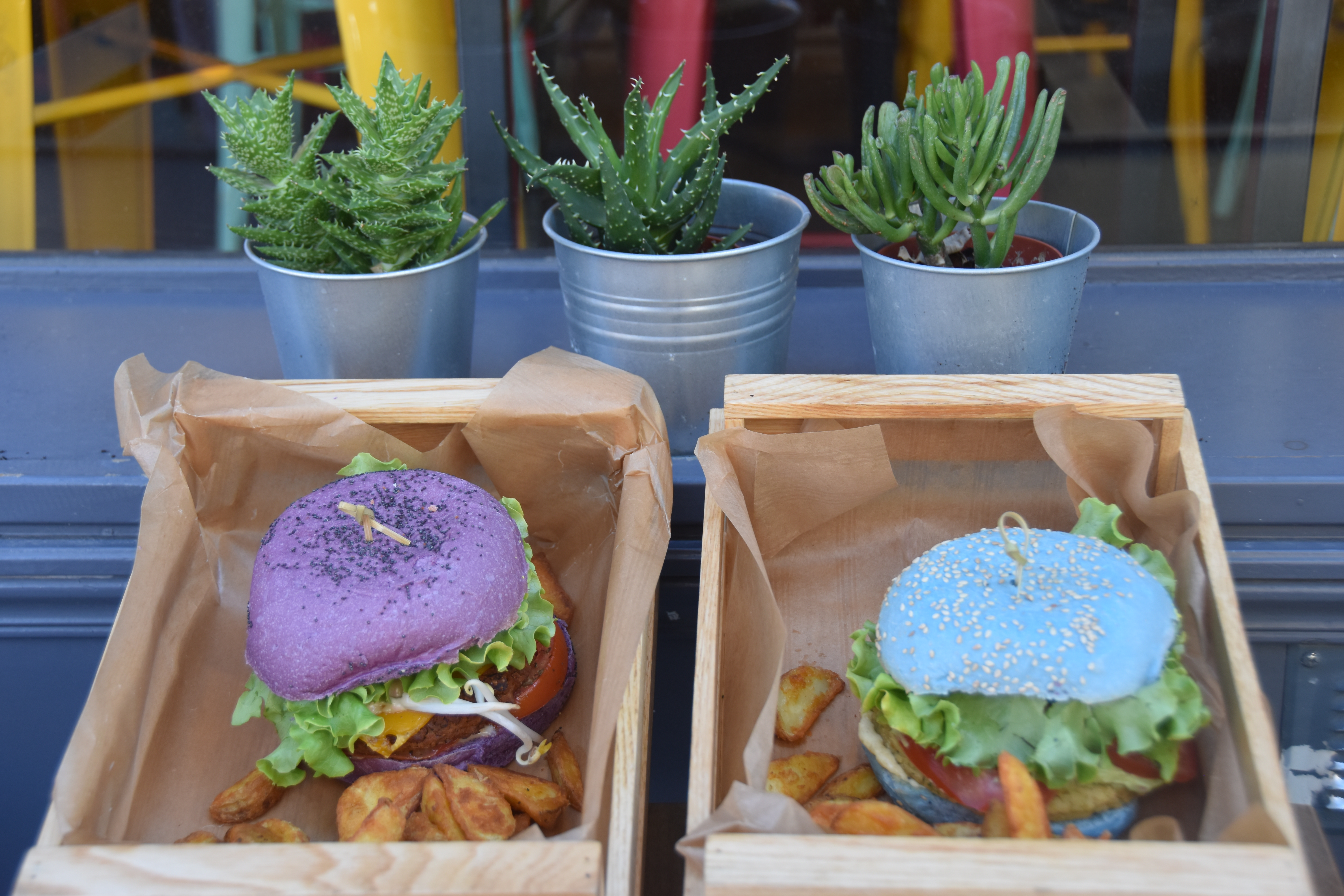 Arc-en-ciel de burgers, Flower Burger vous propose des burgers multicolores et végétaliens ! Saveurs, textures, couleurs, tout y est ! Situé à Marseille, Flower Burger composent des burgers colorés et goûteux, dans une ambiance conviviale. Au menu, Cheesy chickpea, Cherry bomb ou Flower burger sont les noms originiaux de ces créations ! Les buns sont multicolores grâce à des colorants naturels comme le cucurma pour le jaune ou la betterave cerise pour le rose. De plus, ils sont légers et moelleux, une véritable découverte…