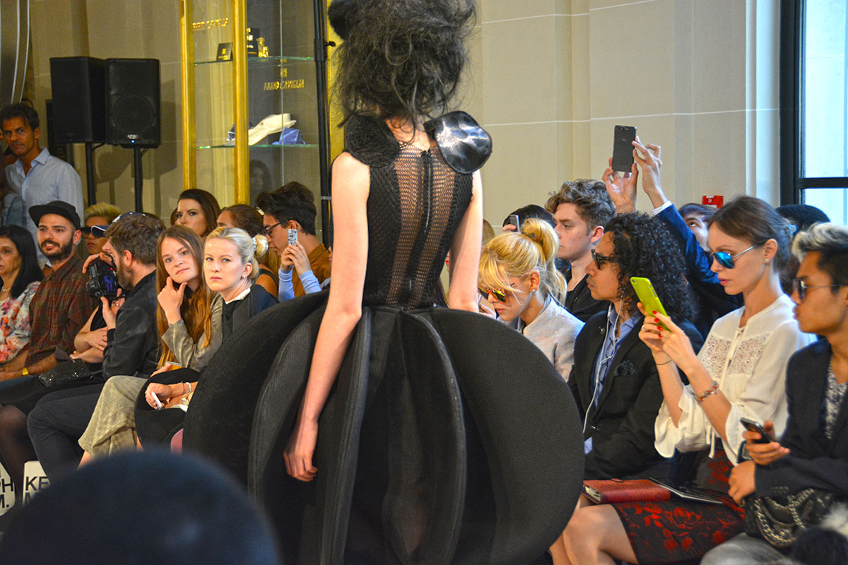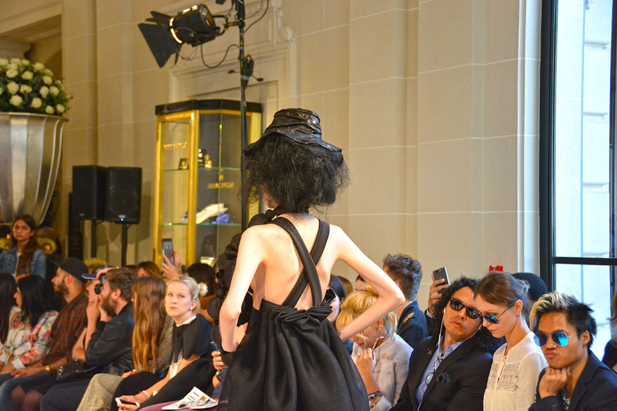 Bowie Wong, couturier japonais nous a époustoufler lors de la Fashion Week ajoutant encore plus d’audace à ses créations . Ainsi, Bowie Wong réinvente la couleur noir en jouant sur toutes les textures possibles et imaginables et le résultat est vraiment à la hauteur de la Haute Couture ! Bowie Wong revient avec une seule couleur le noir mettant en vedette un sentiment de liberté et d’ingéniosité dans ses créations.