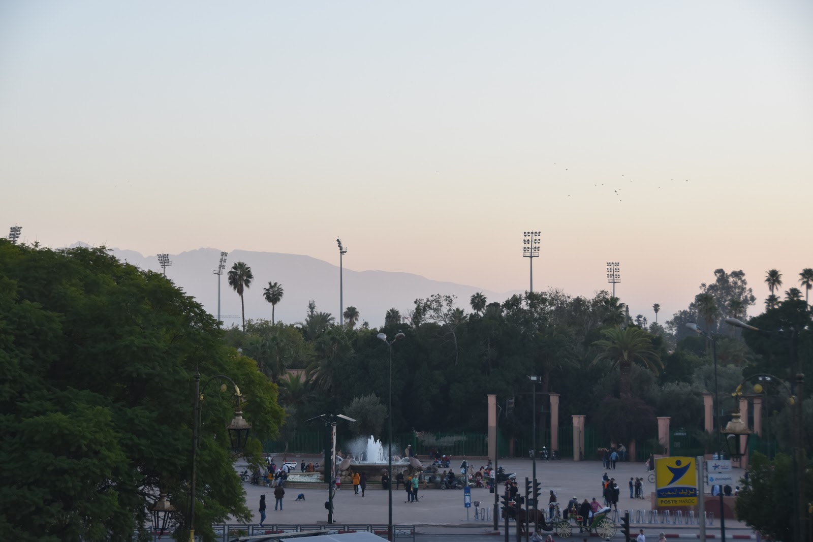 Charmeurs de serpents, diseuses de bonne aventure, groupes de musique et le soir, des dizaines de restaurants ambulants assurent le spectacle. Il y a aussi de belles terrasses des cafés situés autour qui offrent des superbes points de vue sur la place Jemaa-el-Fna, particulièrement au coucher du soleil.