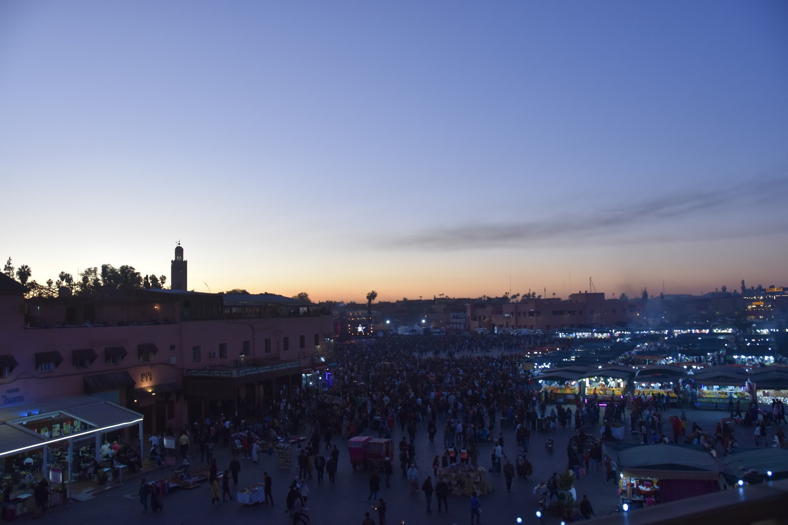 Célèbre place publique au Sud-ouest de la médina de Marrakech au Maroc. Ce haut-lieu traditionnel, populaire et animé notamment la nuit attire plus d’un million de visiteurs chaque année. Scène de théâtre permanente, la place Jemaa-el-Fna a de quoi fasciner, de jour comme de nuit. Quartier le plus vivant de Marrakech, voisine des souks, elle en est le cÅ“ur touristique. Toutes les promenades dans la médina débutent et finissent ici.