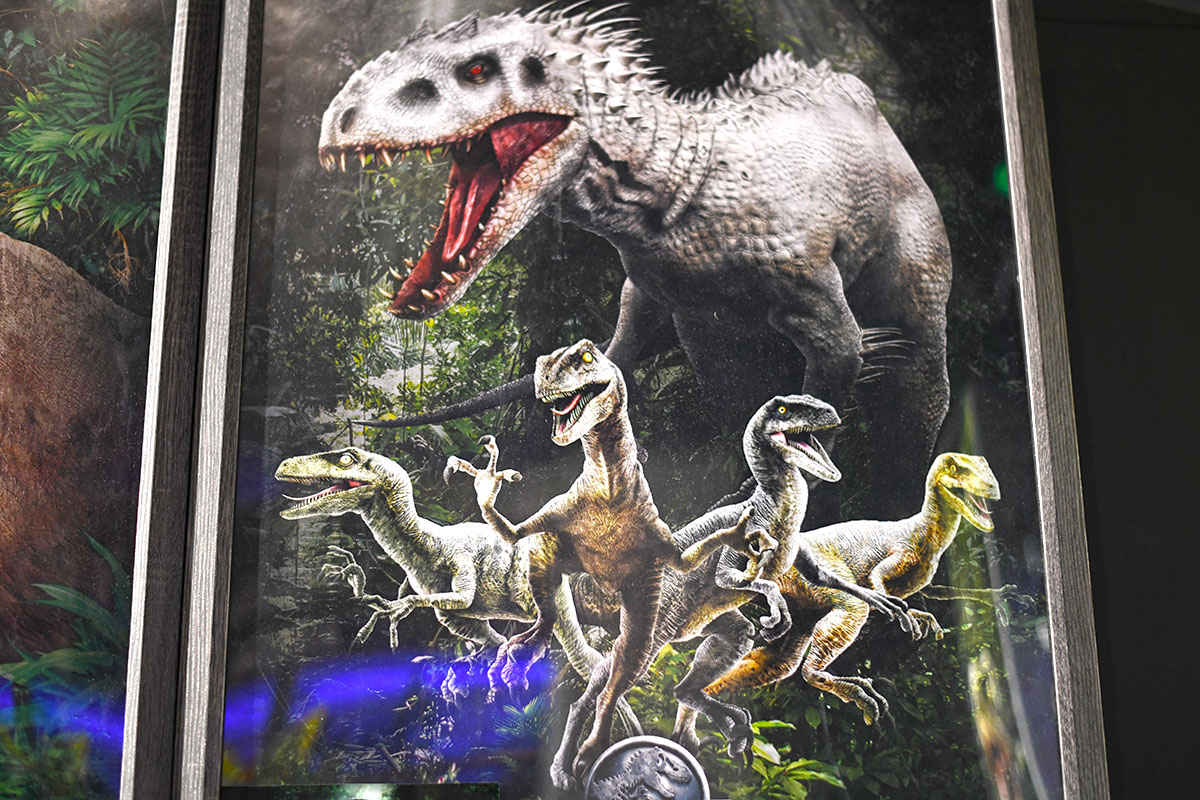 La Cité du Cinéma a consacré une exposition au film Jurassic World et à son univers. Inspirée de l’un des plus grands blockbusters de l’histoire du cinéma, Jurassic World l’Exposition emmène le visiteur au cœur du Park pour revivre les grands moments du film. Les visiteurs s’embarquent à bord du Ferry à la découverte d’Isla Nublar. Ils traversent le célèbre portail de Jurassic World pour s’approcher au plus près des gigantesques dinosaures, certain mesure plus de 7 mètres de haut. Les visiteurs peuvent explorer le Park en visite guidée par un ranger du parc, ils vont découvrir plusieurs mises en scène comme le laboratoire d’InGen du village, de l’enclos du T-Rex ou encore du zoo des bébés dinosaures.