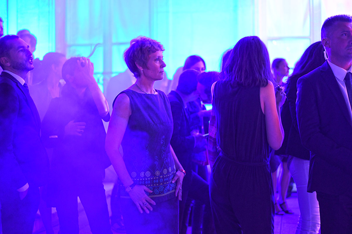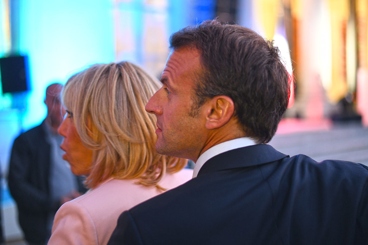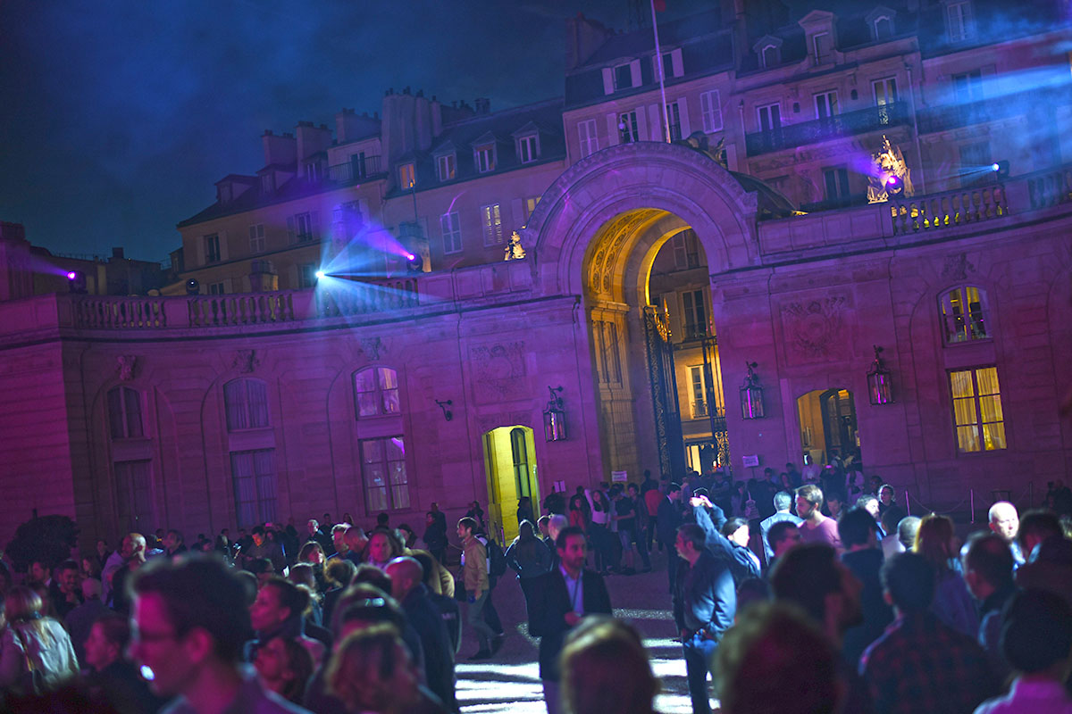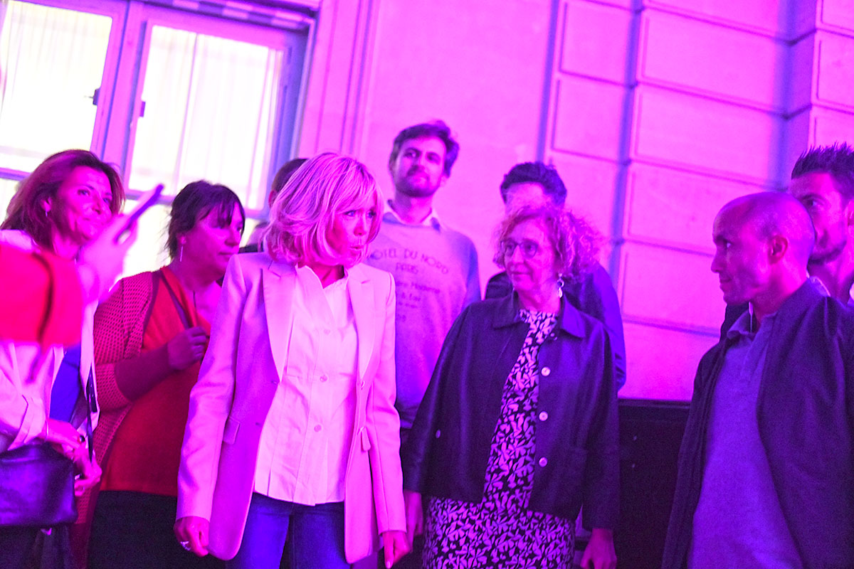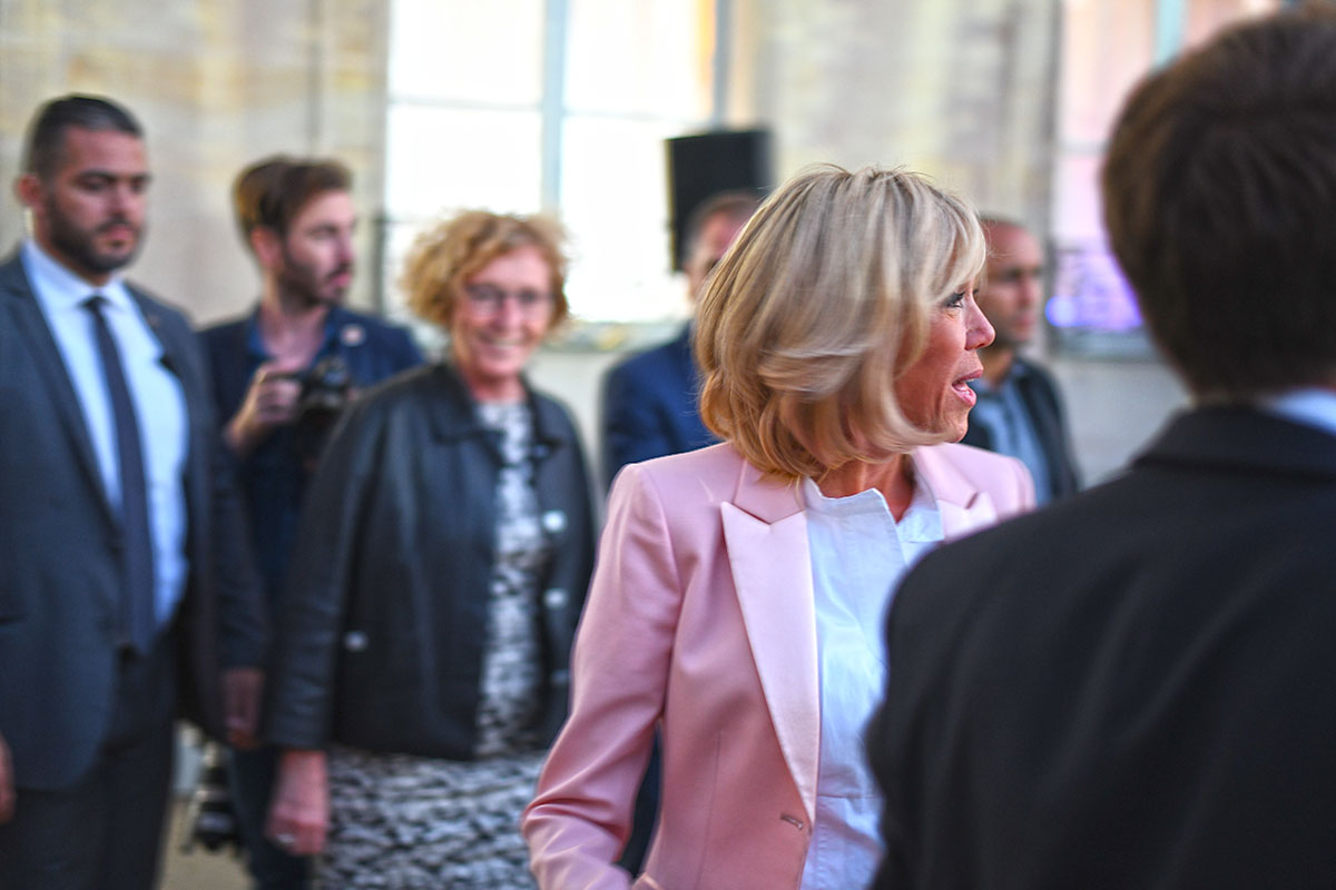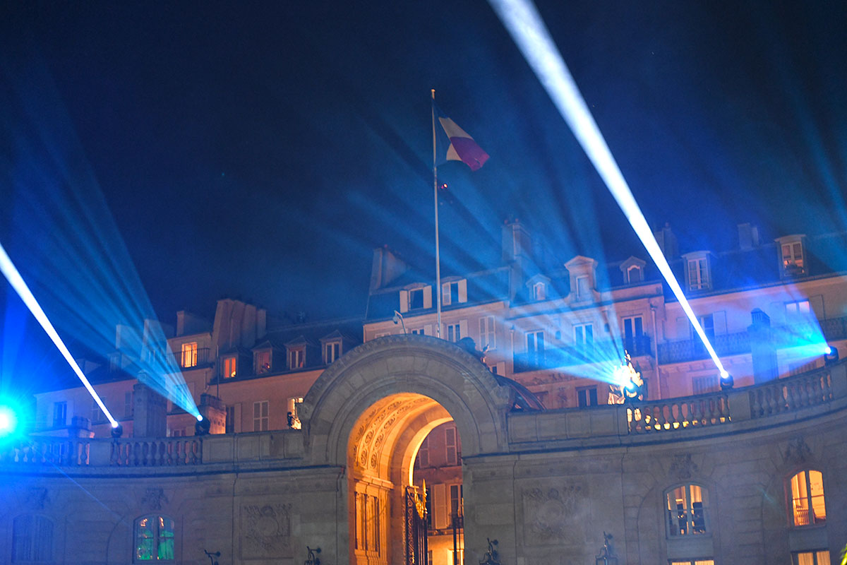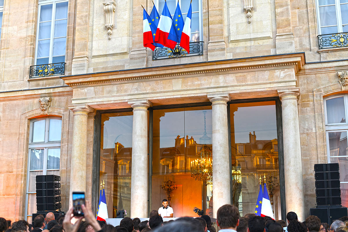 Les spots multicolores clignotent, le son est au maximum, la grande dame Brigitte Macron passe brièvement en début de soirée le long de la cour, aussitôt photographiée par des centaines de smartphones.