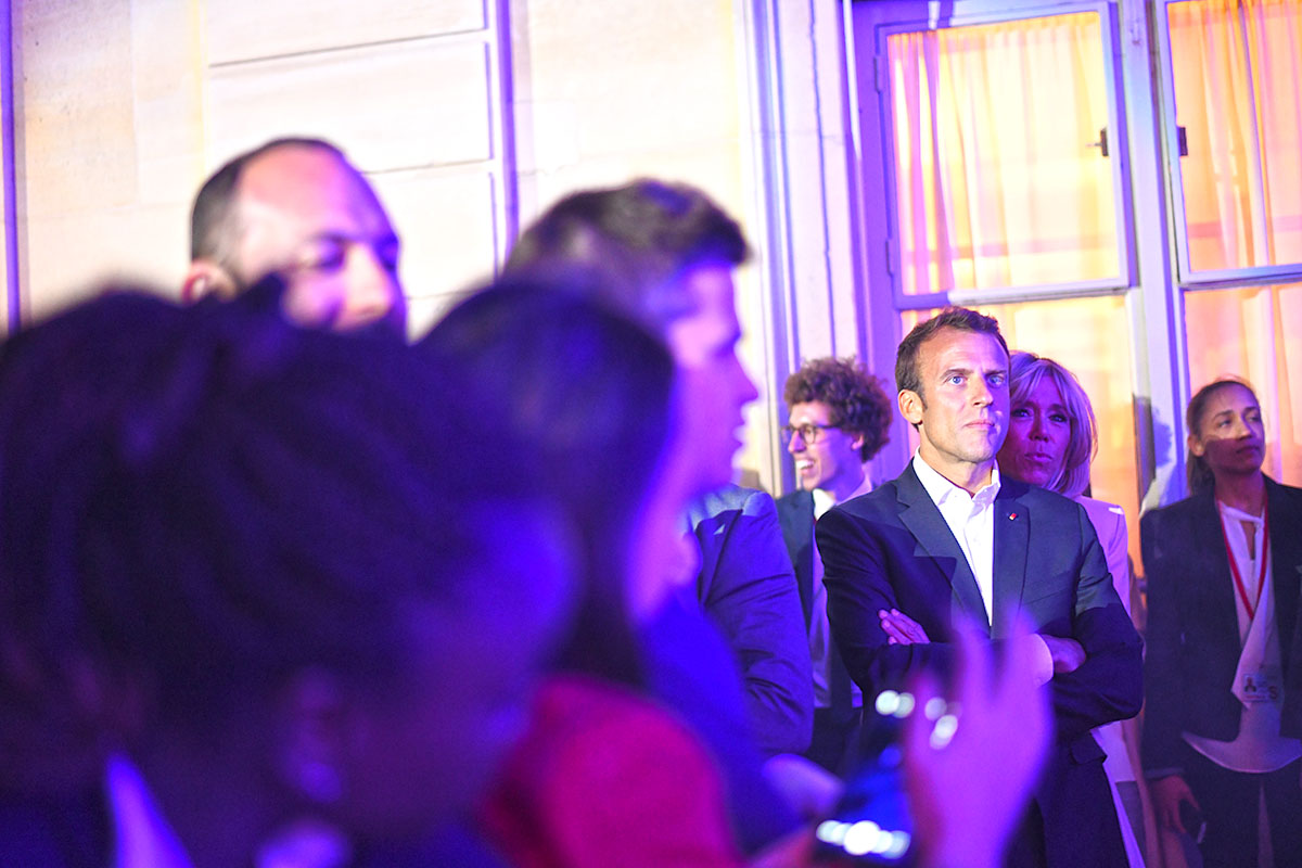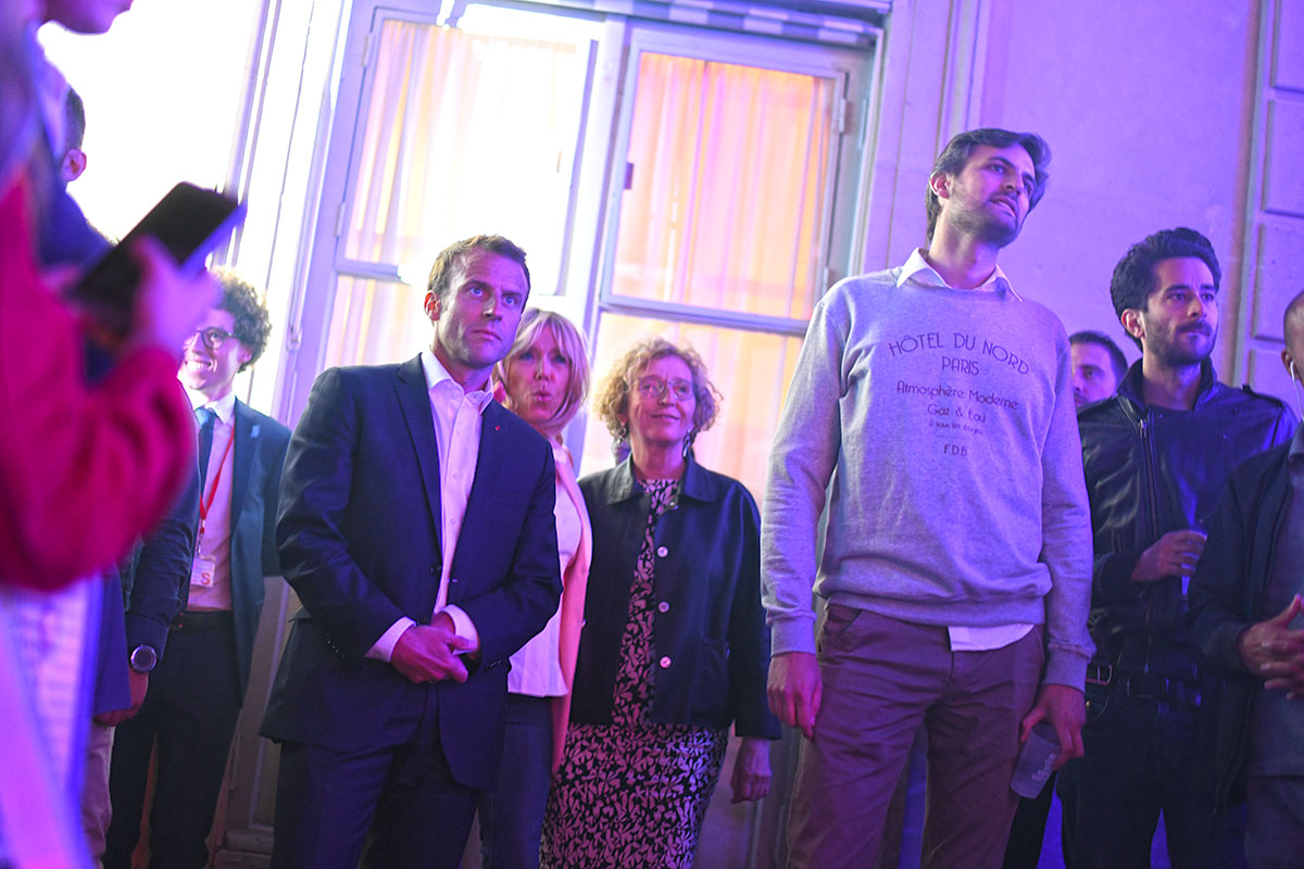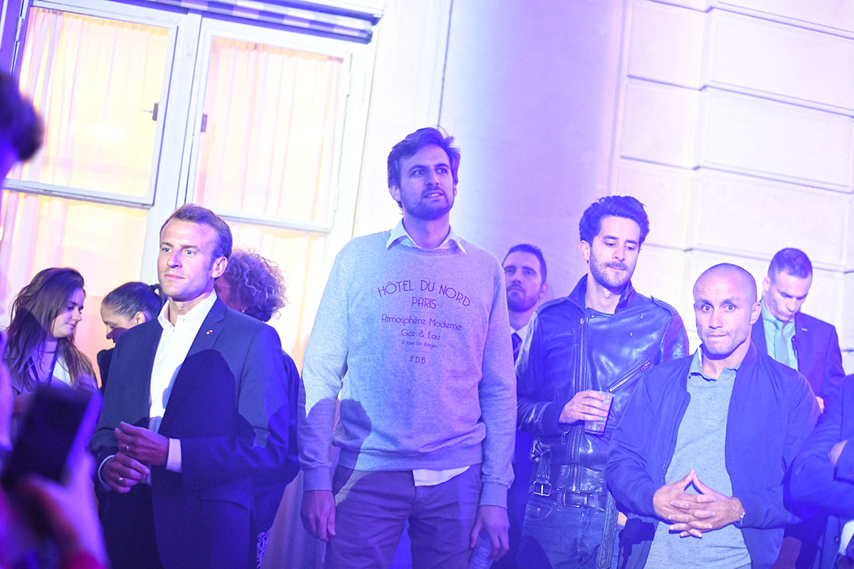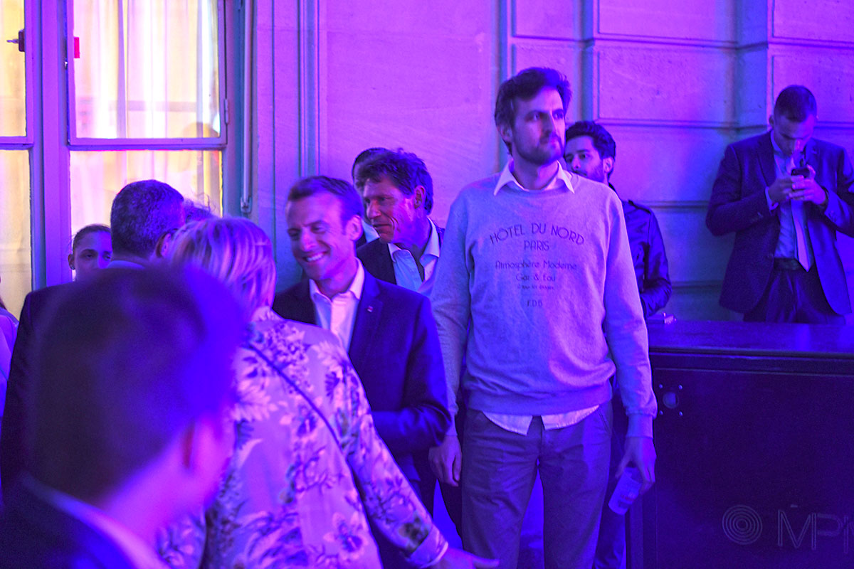 Enfin la star de la soirée, Kavinsky, s’installe aux manettes et fait monter l’ambiance d’un cran. C’est le moment que choisit le Président Emmanuel Macron pour faire son apparition.