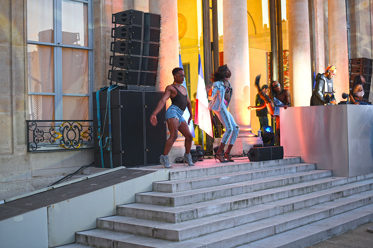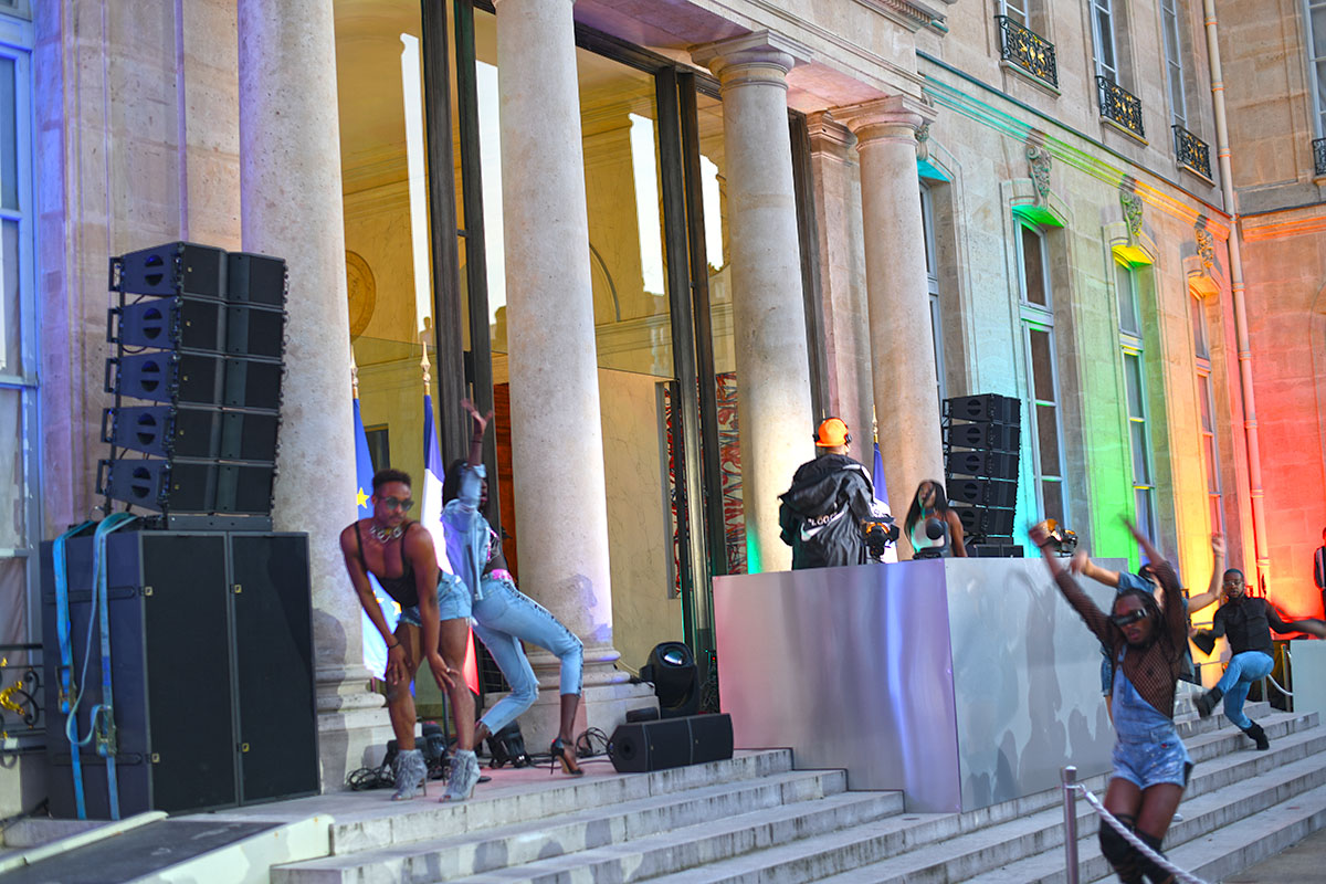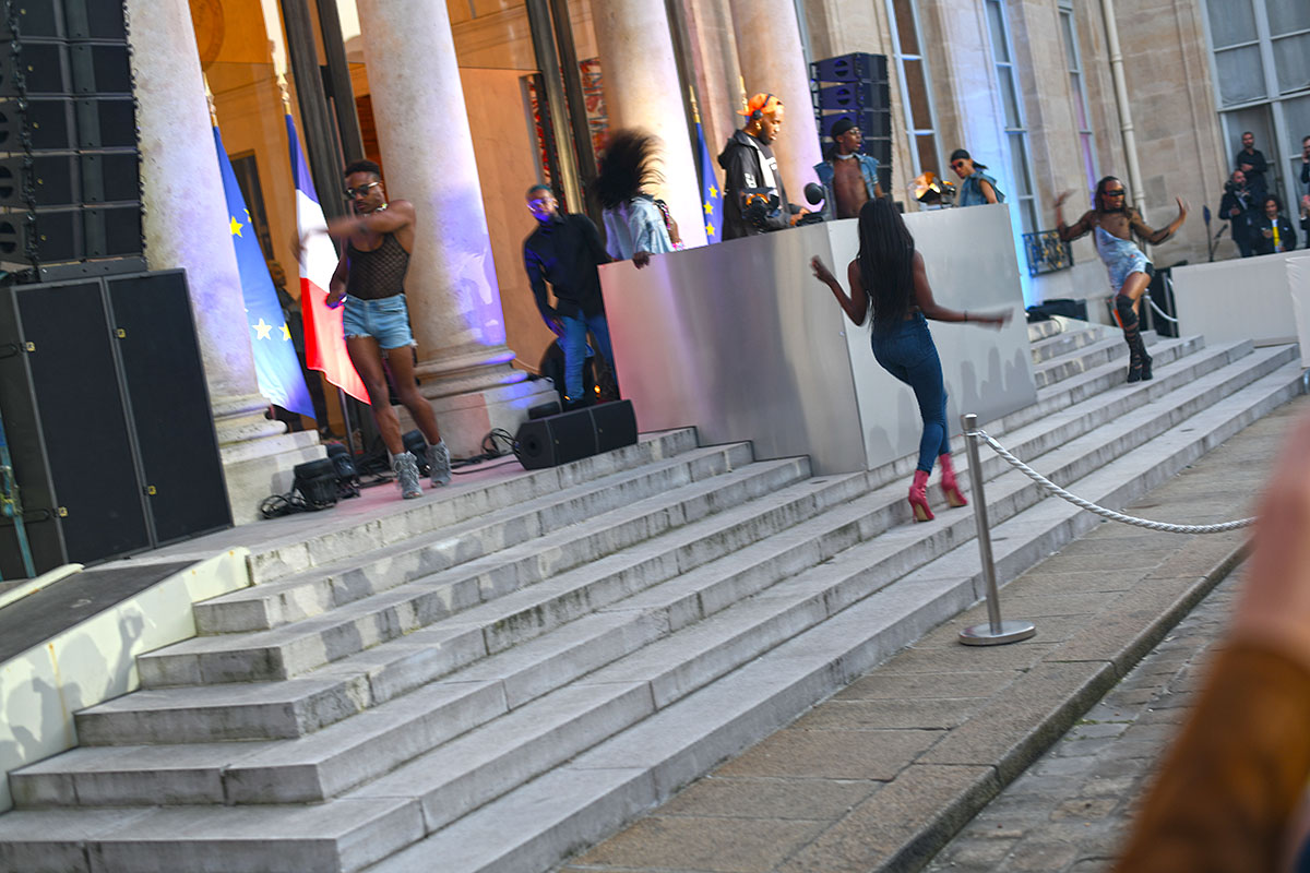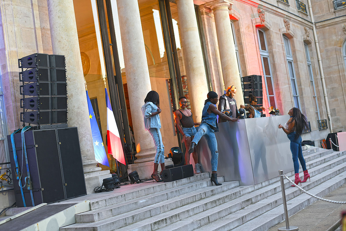 Danseurs et danseuses entourent l’estrade, du jamais vu dans ce lieu si protocolaire. Dans une ambiance joyeuse, environ 1.500 curieux qui ont cliqué les premiers sur le site ouvert pour l’occasion, étaient présents pour marquer cette French Touch à l’Élysée