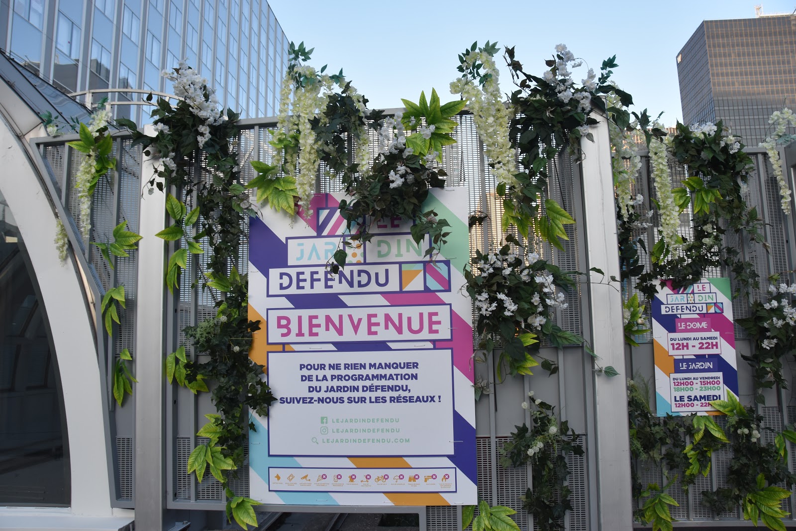 Acidulé, ensoleillé, caché au milieu des immeubles de bureaux, Le Jardin Défendu propose sur 1500 m2, un lieu de détente par excellence, grâce à la végétalisation et une programmation éclectique. Cette bulle verdoyante et colorée offre les conditions optimales pour profiter de l’été. Déjeuners, pauses déjeuner rafraîchissantes et musicales, soirées… Le tous dans un écrin de verdure au milieu du quartier d’affaire.