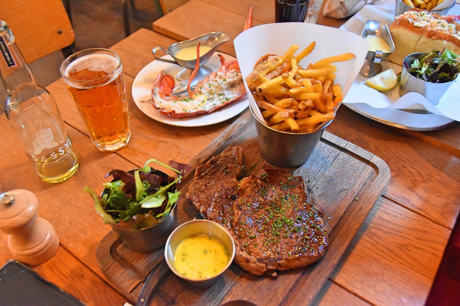 C’est vraiment une belle adresse pour découvrir le homard. Ce met de qualité est sublimé rôti ou présenté entre deux tranches de pain. Le homard devient accessible à tous les gourmands chez Les Pinces. Personnellement, je me suis laissé tenter par le lobster roll qui est un pain garni de chair de homard et de sauce maison accompagnée de quelques brins de ciboulette. La mie est moelleuse à souhait et vaut le détour. Les plats sont bien présentés et généreux. Le « Surf and Turf » est parfait lorsqu’on hésite entre crustacé et viande. Pour finir votre repas en beauté, quoi de meilleur qu’un dessert maison, je vous recommande le crumble à la poire accompagné de sa boule de glace à la vanille, c’est un pur délice. Le thé gourmand est aussi une belle alternative pour découvrir plusieurs desserts à la fois tels que le cheesecake, le crumble à la poire et la mousse au chocolat. C’est une véritable fête des papilles tout au long du repas.
