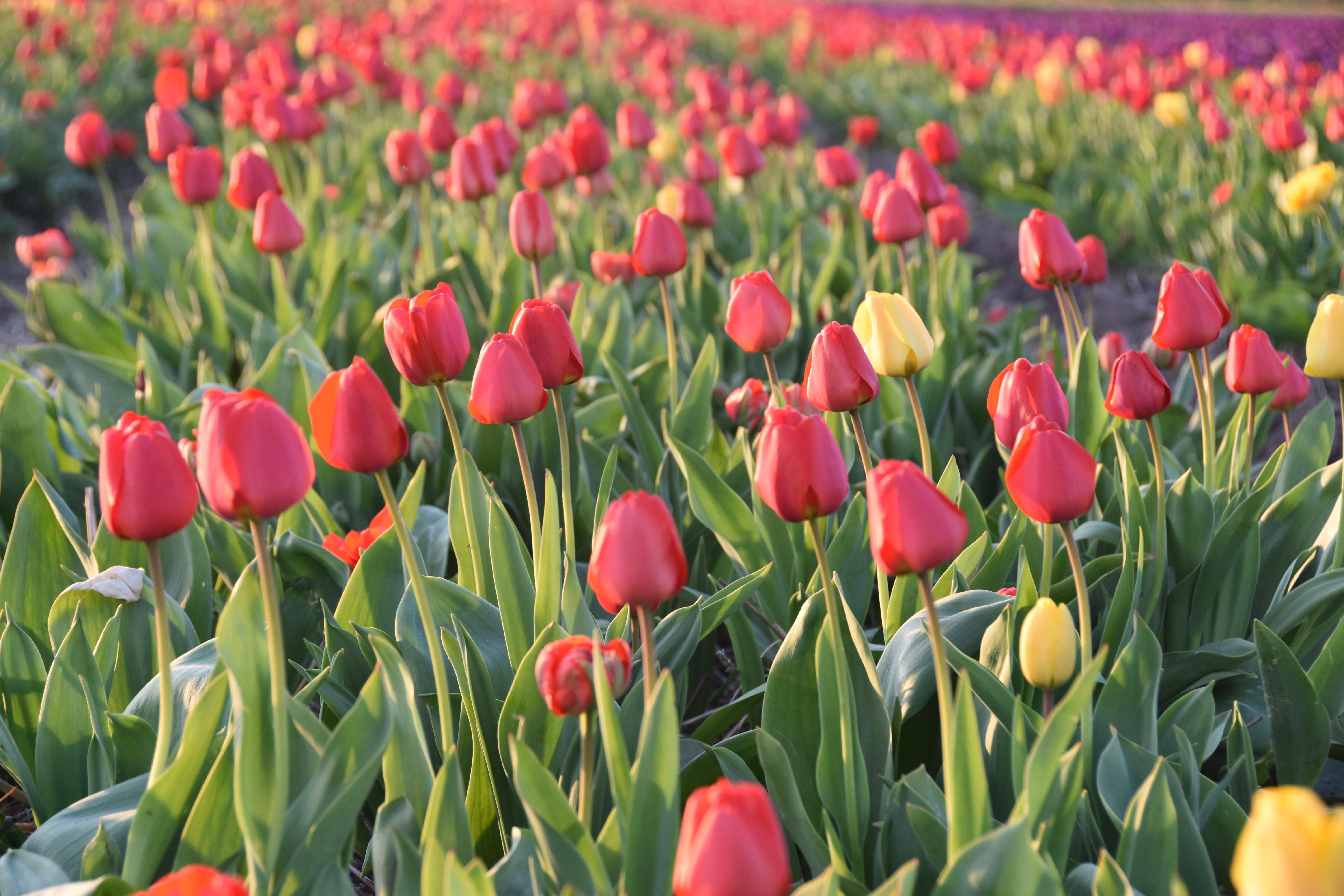 Annonciatrice du printemps, rouge, rose, jaune vif ou mĂŞme d’un intense pourpre foncĂ©, la tulipe est un vĂ©ritable symbole des Pays-Bas, faisant la fiertĂ© des NĂ©erlandais. Il faut dire que l’horticulture est une grande spĂ©cialitĂ© du pays : saviez-vous que près de 80% des bulbes vendus internationalement proviennent des Pays-Bas. En effet, la Hollande se couvre de fleurs.Â