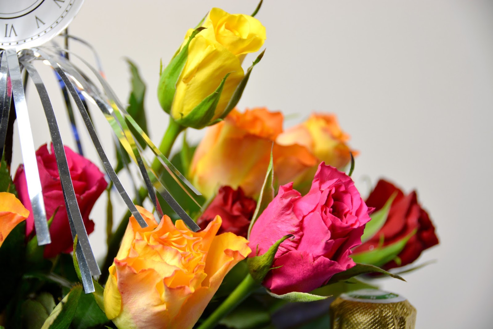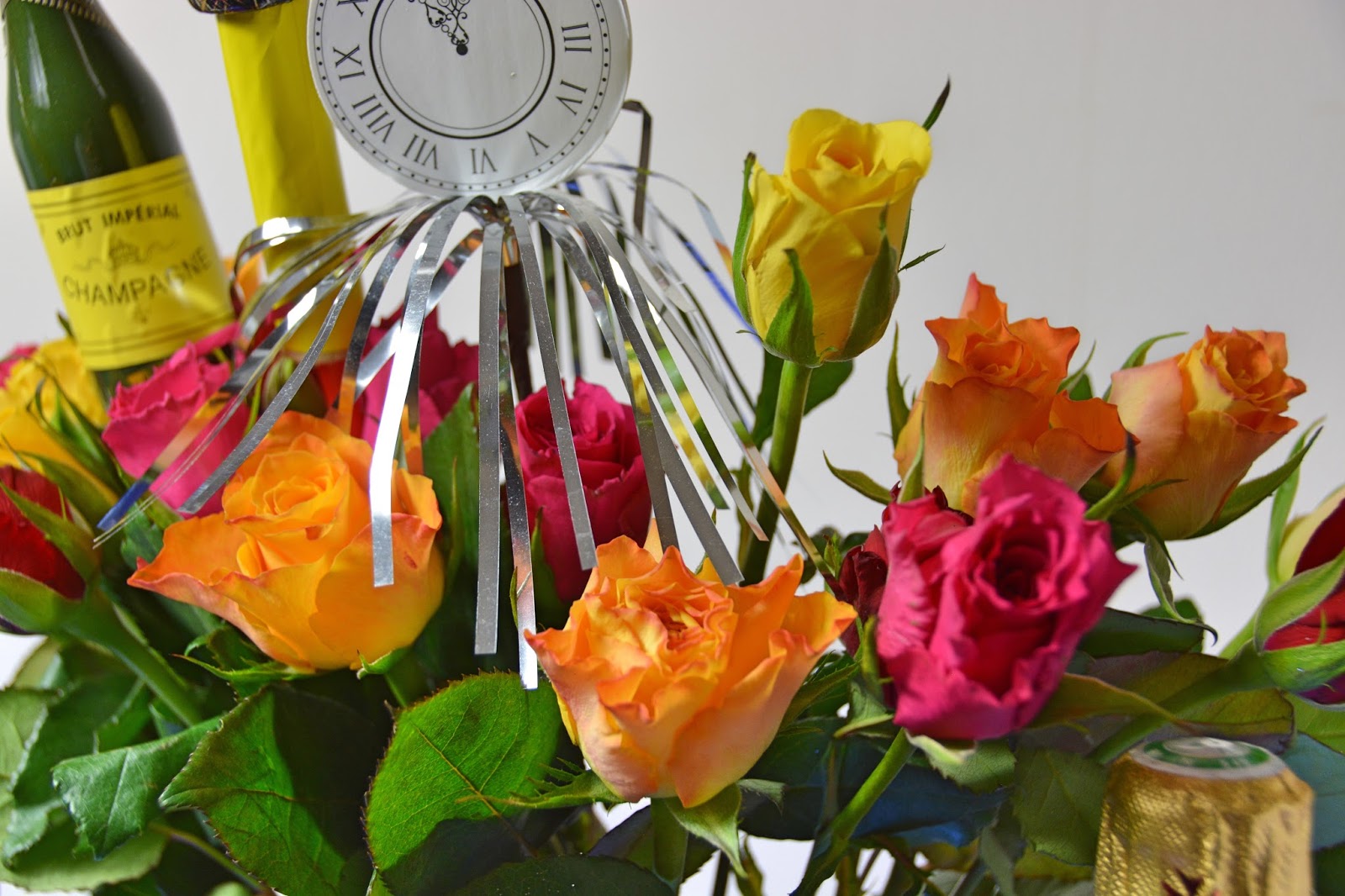 J’ai choisi un bouquet très festif. J’adore les roses colorés et ce bouquet est complètement à mon image. Du rose, de l’orange et du jaune. Je suis tombée amoureuse de ce beau bouquet surtout des petites décorations qui les accompagnent. Ce magnifique bouquet est accompagné d’une belle bouteille de champagne Lanson. Les occasions sont nombreuses en ce moment, les fêtes des mères qui approchent, la St Valentin. J’adore ce bouquet car toutes ces couleurs me mette de bonne humeur et donne envie d’exploser de joie à réception.