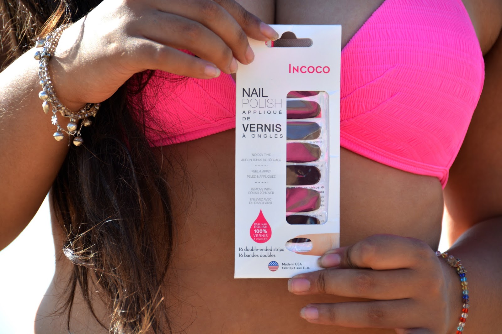 Coucou,Mes indispensables pendant mes vacances au soleil. Je dirais en premier de beaux ongles. Je suis fan des ongles à paillettes, mais parfois un peu de simplicité grâce à des nails patch, c’est aussi une très bonne idée. Il me faut aussi mon portable sans oublier mon meilleur allié mes lunettes de soleil et une bonne crème solaire très protectrice. J’adore rester des heures au soleil, mais ça a de nombreuses conséquences sur la peau, une protection importante est nécessaire ainsi qu’une bonne hydratation et on le répétera jamais assez il faut l’appliquer plusieurs fois et régulièrement et en couches généreuse, haha ! Le maillot est bien évidemment en option ! 🙂