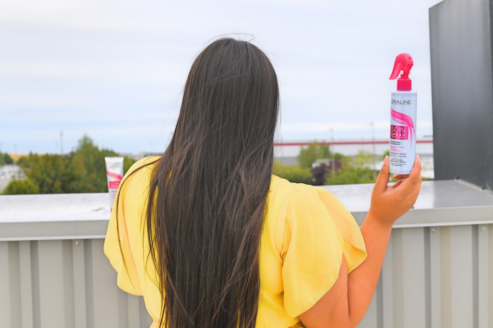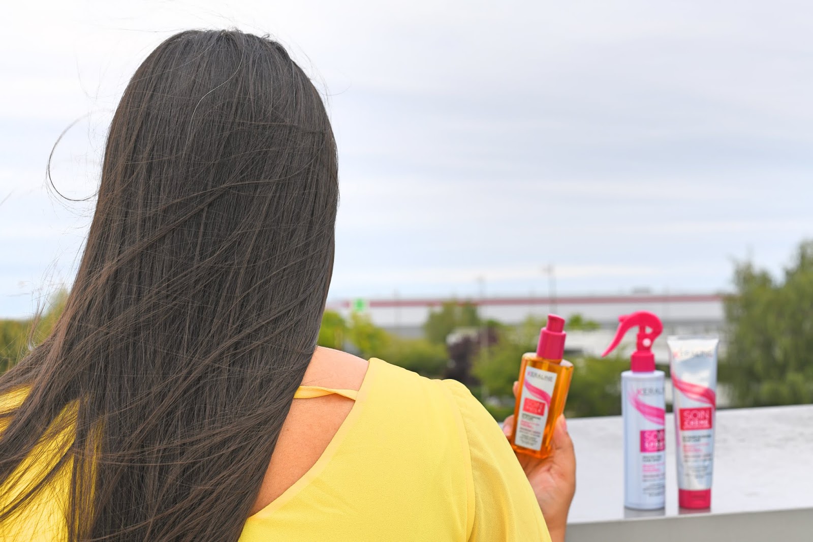 Ensuite, vient mon coup de cœur que j’adore appliquer sur mes cheveux, le soin huile légère qui a premièrement une odeur divine. Elle est très légère et permet d’hydrater le cheveu en un clin d’œil ! Cette huile est composée de kératine et d’huile de pequi qui permet de renforcer la beauté naturelle du cheveu. Personnellement, j’en mettais très, juste pour bien finaliser un brushing par exemple. J’adorai l’utiliser en bain d’huile avant un shampoing, elle est vraiment efficace, car elle nourrit et hydrate intensément. Le soin spray protecteur est à avoir absolument si vous êtes une grande amatrice des brushings et des lissages. La aussi, le duo kératine et huile de péqui permet de protéger le cheveu des UV, mais aussi de la chaleur des plaques ainsi que du sèche-cheveux. Ce spray est recommandé pour protéger le cheveu avant toute utilisation de source de chaleur. De plus, il est multifonction, car il démêle et hydrate. Cette gamme de Keraline Paris est excellente et permet de prendre soin de ses cheveux intensément. Personnellement, je suis devenue une adepte de leurs produits.