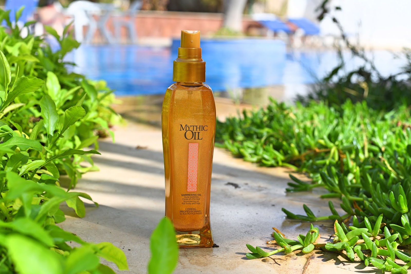 Mon secret de beauté en ce moment, c’est l’huile illuminante l’Oréal Professional Mythic Oil. Une huile pour vos cheveux et votre corps. Elle est scintillante ce que j’apprécie énormément car elle continent des particules d’or qui brillent surtout au soleil. Cette huile bénéficie des propriétés hydratantes de l’huile de magnolia. La texture ressemble à un sérum léger qui offre aux cheveux et au corps une nutrition et un confort.