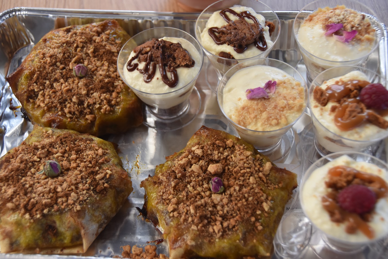 Tourte sucré salé traditionnelle à base de poulet, d’oignons confits, d’amandes, d’œufs, de cannelle et de safran et saupoudrée de sucre glace, les pastillas au poulet de nomadkitc13 sont excellentes. Envie d’une touche de sucrée pour vos événements, nomadkitc13 est excellente pour éblouir vos papilles ! Je vous recommande le trio de verrines qui sont délicieuses. Mention spéciale pour la Pana Cotta framboises, le tiramisu spéculos et le tiramisu brownie. Sans oublier le tiramisu à la fleur d’oranger qui est un pur délice ! Garnie de délicieuses pièces sucrées et salés, c’est l’occasion de pauses conviviales et gourmandes avec nomadkitc13 !