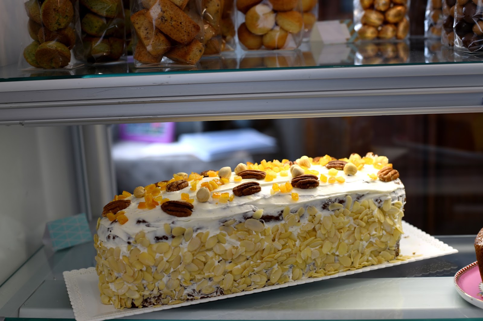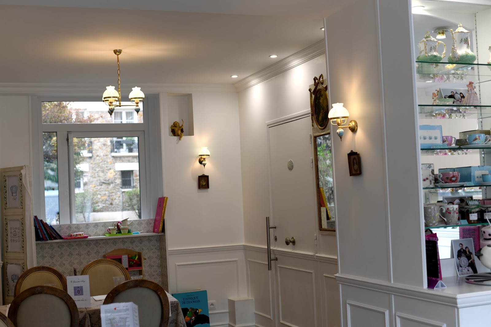 Passons au salon de thé, j’ai beaucoup apprécié la décoration qui est à la fois raffiné et élégante qui m’a tout de suite fait penser à un beau conte de fées Cette belle décoration a été réalisée par Olivier Geoffroy. Chez O gourmandises d’Ange, on peut manger le midi, la carte est très varié, il y a le choix entre des œufs cocotte bio au saumon et sa salade, une quiche du jour, poulet au citron… En ce moment pour les beaux jours, on peut se rafraîchir de boissons ou de thés glacés. Sans oublier les magnifiques pâtisseries comme Lovely Rose, Exquis passion, croustillant caramel et chocolat sans gluten. J’ai adoré les différentes pâtisseries qui sont réalisées avec goûts et sont magnifiquement présentées dans la vitrine.