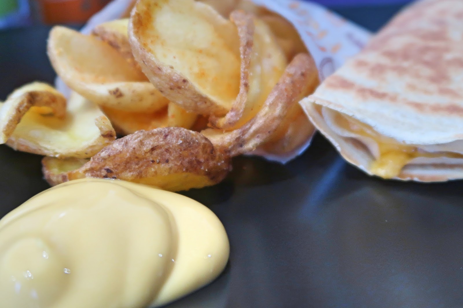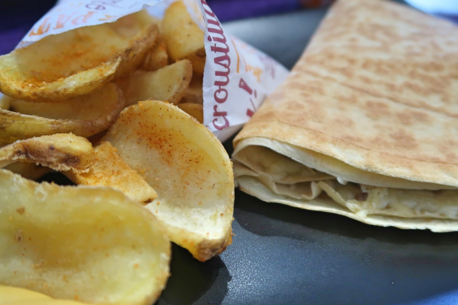 Passons aux crêpes, personnellement, j’ai choisi de composé ma crêpe moi-même, j’ai choisi d’y mettre de la viande hachée avec du cheddar, et la sauce fromagère maison. La crêpe est délicieuse et fond parfaitement en bouche. Mention spéciale pour la viande hachée ultra-savoureuse à la cuisson parfaite. Le fromage parfaitement fondu et la sauce fromagère maison relèvent bien le goût de la crêpe. Une mention aux frites maisons qui sont délicieuses et originales par leur forme ronde, de plus la portion est généreuse. La qualité se fait ressentir surtout pour les crêpes, tout est généreux.
