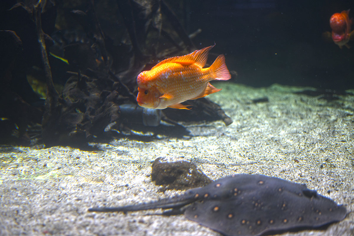L’aquarium tropical du palais de la Porte Dorée comporte une importante collection de poissons d’eau douce tropicale et d’eau de mer : piranhas, hippocampes, raies, poisson licorne, poissons électriques, poissons clowns, poissons chirurgiens, des tortues, des caïmans et des crocodiles. Un véritable voyage dans les eaux tropicales océaniques et continentales !