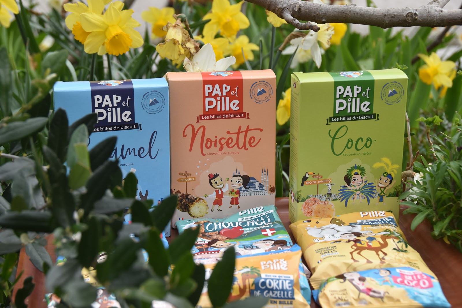 Gourmandes et légères, Pap & Pille transforment les recettes du monde en bille de biscuit. En effet, c’est un véritable tour du monde de recettes unique. Ces boules de biscuits sont délicieuses et rappellent des souvenirs d’enfance ! Passionné de cuisine, le couple s’initie aux recettes locales, ils réalisent alors des billes ayant le goût des cornes de gazelle. Face à l’enthousiasme des invités, ils décident de créer leur entreprise : ils vendent leur maison et investissent toutes leurs économies. Créé en février 2019, après huit mois de recherche pour industrialiser la conception sous forme de billes, Fatiha et Raibed Tahri lancent leur première ligne de production au sein de leur propre usine.