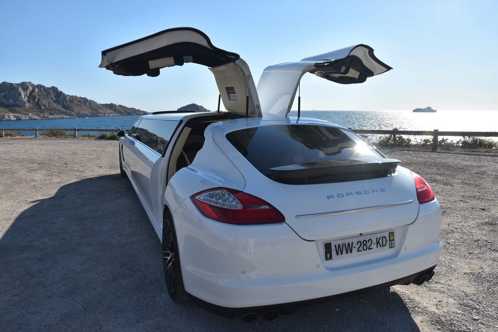 En quête de luxe, que ce soit pour vos transferts, événement, mariage ou une soirée privée entre amis, vous souhaitez visiter et profiter de Marseille, en plein jour ou la nuit, US EVENT’S est le spécialiste de la limousine et véhicule luxe qui vous offre le meilleur service. Fort de ces années d’expérience, US EVENT’S vous offre des prestations haut de gamme, sur-mesure et adaptées à vos exigences. La limousine Porsche Panamera peut accueillir jusqu’à 8 passagers. Équipée des dernières technologies, elle saura vous déplacer dans des conditions optimales de confort et de sécurité. En effet, un chauffeur sera mis à votre disposition et vous pourrez profiter pleinement des services présents à bord. C’est avec des étoiles pleins les yeux que l’on a découvert cette magnifique limousine. Son look agressif époustouflant vous procure les joies versatiles de l’automobile moderne. Alors n’attendez plus et vivez vous aussi votre instant VIP avec US EVENT’S !