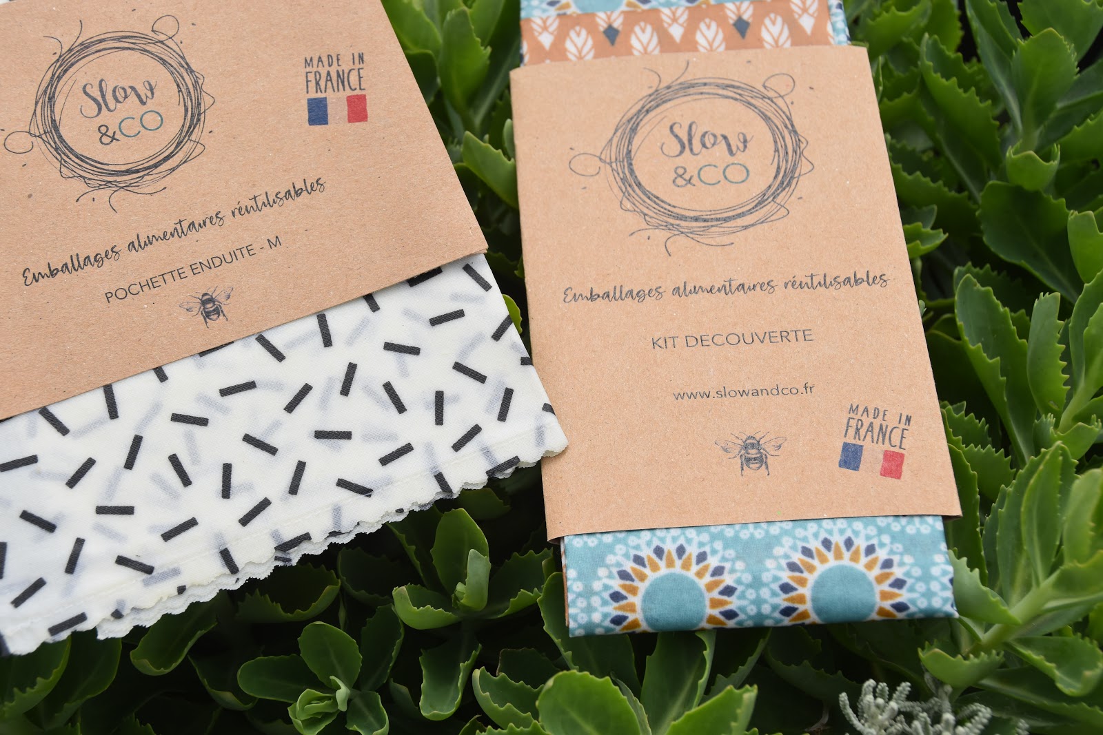 Fabricant français d’emballages écologiques réutilisables à base de cire d’abeille, Slow&CO réinvente votre manière d’emballer de façon responsable. Le kit Slow&CO vous permet de couvrir vos plats tels que grande ou petite assiette, bol, coupelle, plat à tarte.. Les emballages sont 100 % végétal, réutilisables, respirants et fabriqués en France ! C’est une véritable alternative écologique qui vous séduira dès la première utilisation.