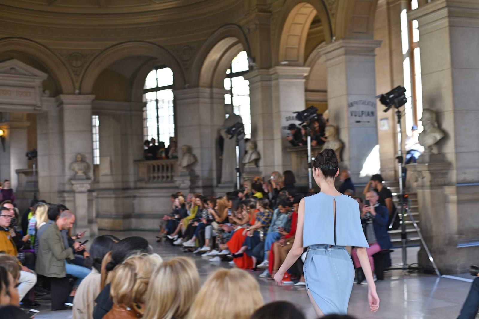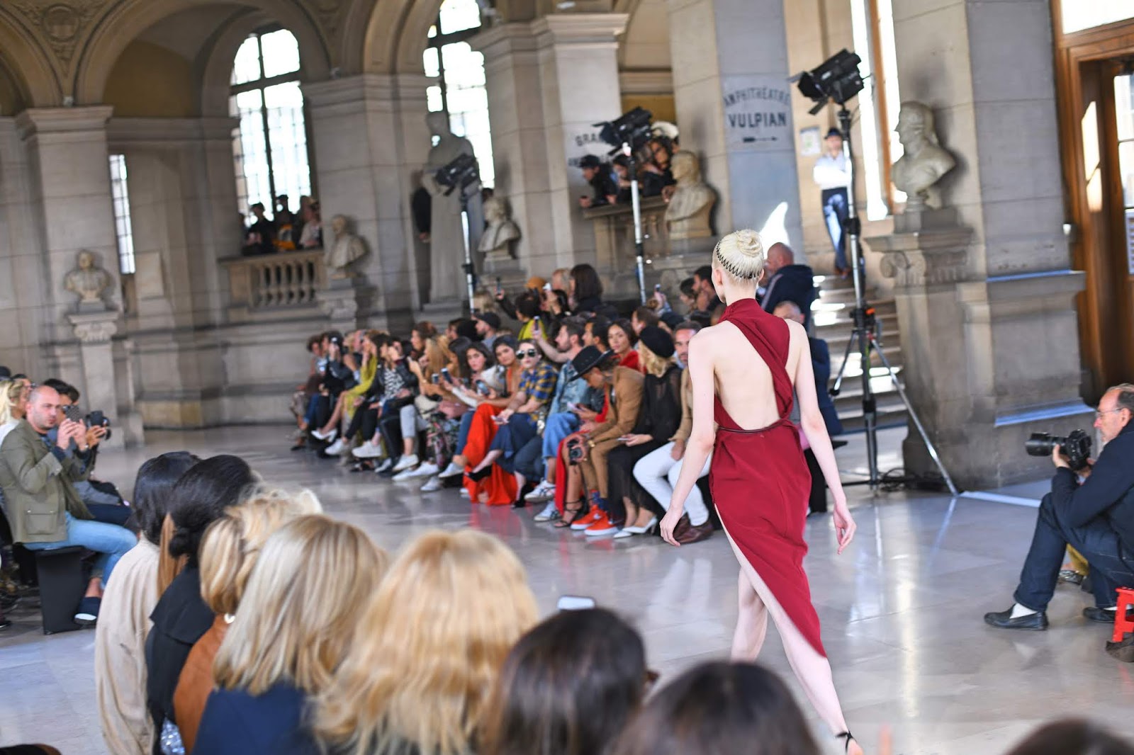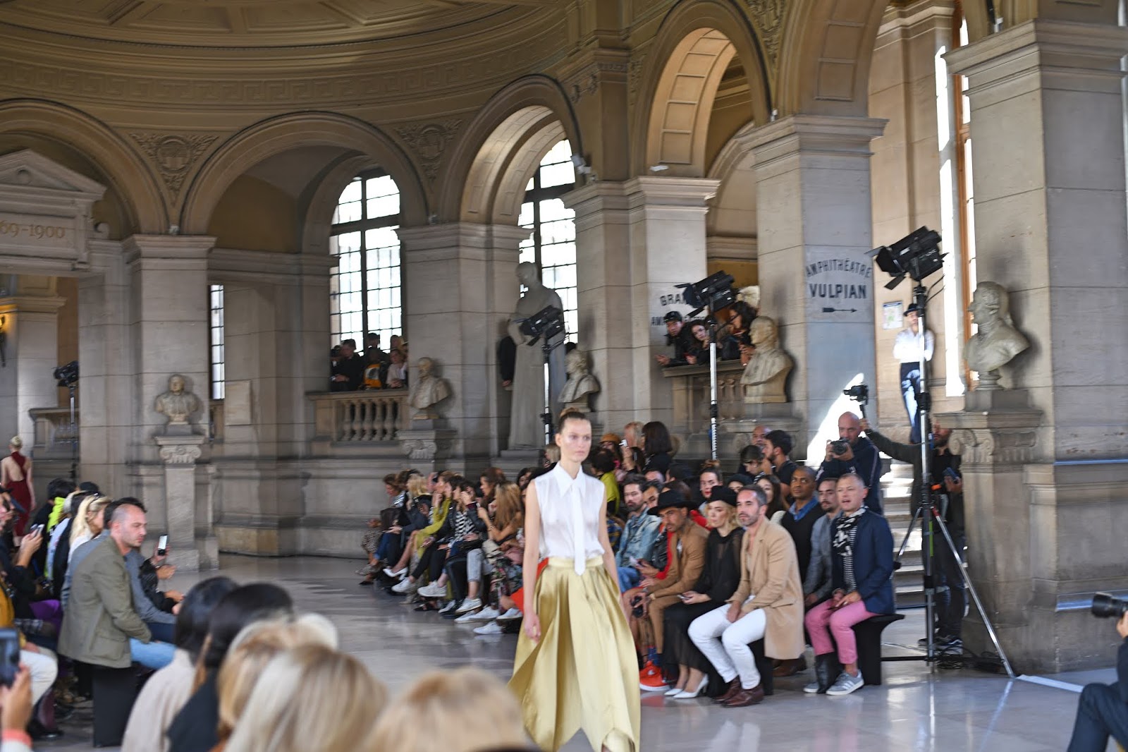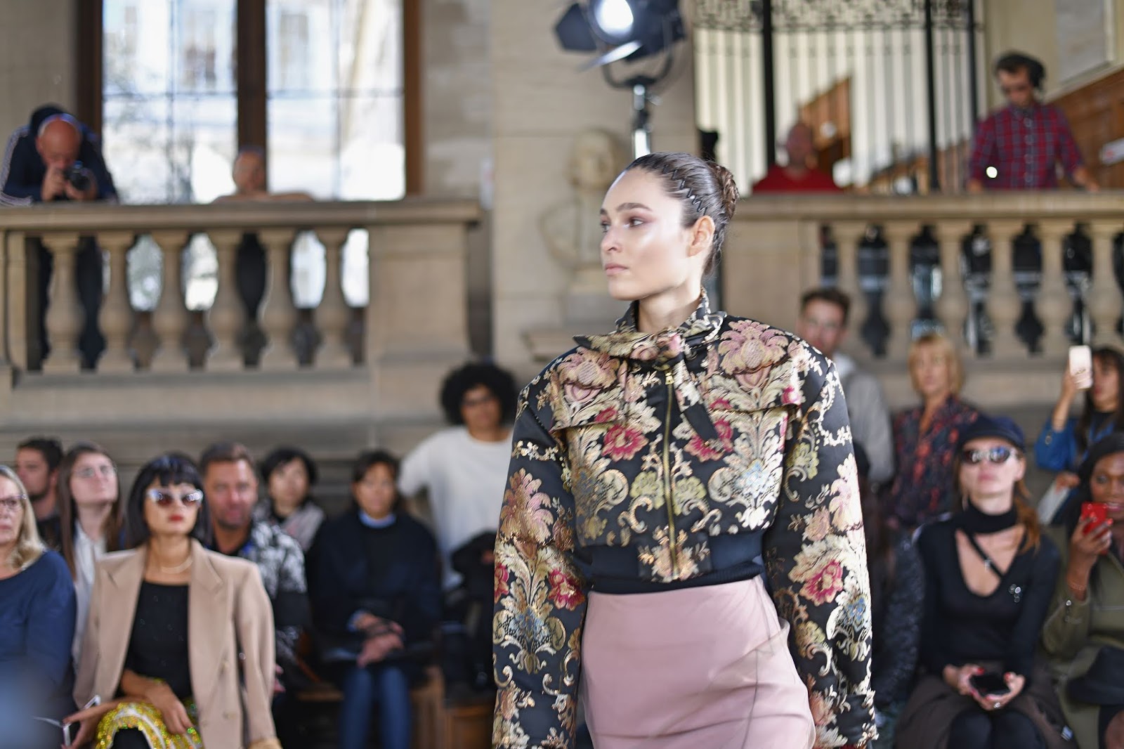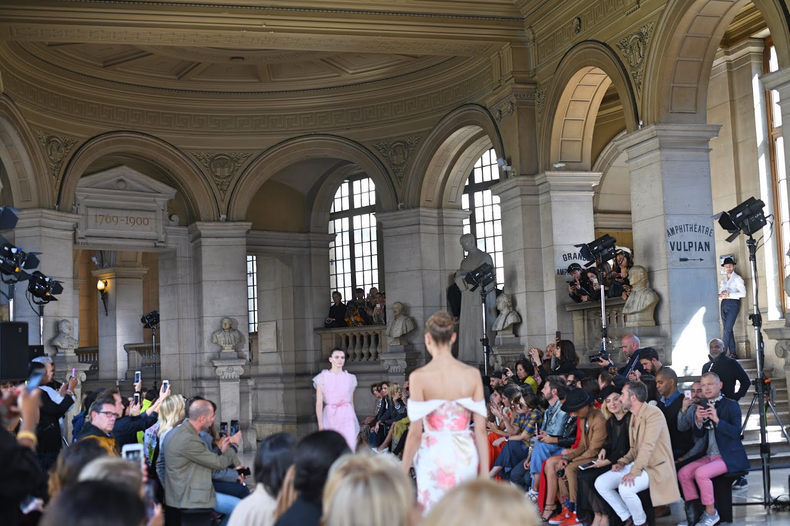 Lors du défilé, les lignes sont féminines avec de belles coupes. J’ai beaucoup apprécie les drapés, le taffetas de soie et les brocarts ainsi que les volumes 3D. C’était magnifique, il y avait une réelle fluidité dans les créations, un énorme travail du plissé. De plus, la coupe de certaines robes sont de véritable œuvres d’art. Les couleurs nude et pastel ont étaient mis à l’honneur pendant le défilé comme le jaune, le rose, le bleue contrastant avec le violet, c’était tout simplement sublime.