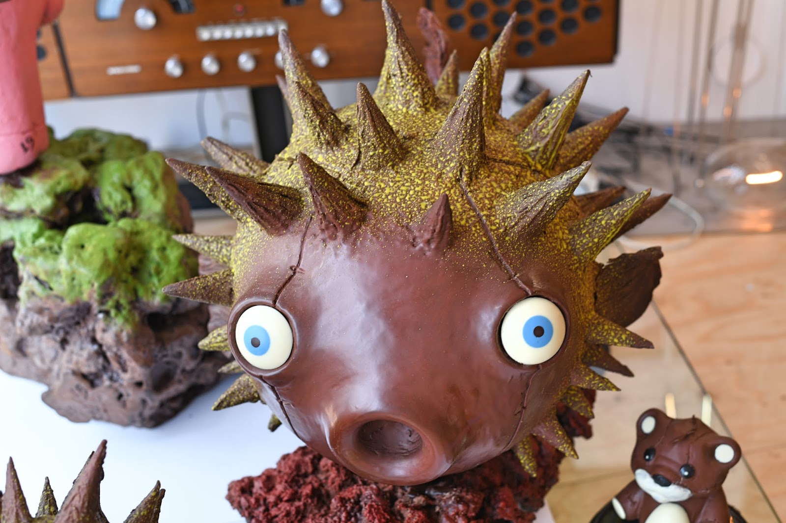 Dernièrement, je me suis rendu à un vernissage à Paris, nommé « Quand le chocolat rencontre l’art », le jeudi 24 mai. La Mutinerie Chocolaterie s’associe, durant un mois, à la HEP Galerie pour une exposition alléchante et surprenante ! J’ai découvert des œuvres et sculptures en chocolat réalisées par deux hommes très talentueux et très différents, Luc Baudin, artiste et artisan chocolatier, fondateur de La Mutinerie chocolaterie et Shadee k, figure montante du street art à Paris, créateur des tags « Kevinours ». Ce vernissage a permis de mettre en lumière des œuvres décoratives uniques tout chocolat, réalisés à 4 mains par les jeunes talents.