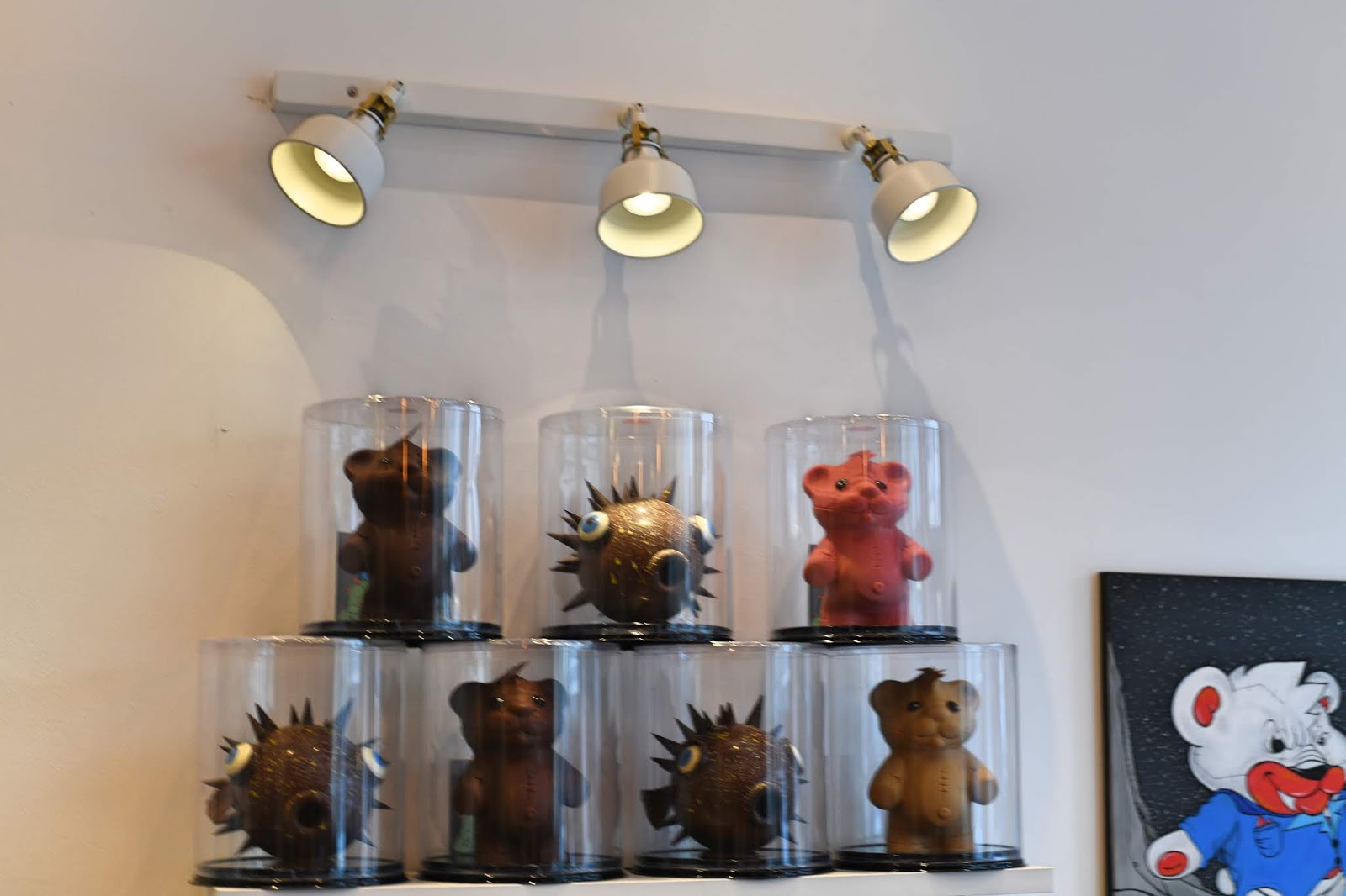De plus, ces œuvres sont exposées et mises en vente pour les collectionneurs et les passionnés de chocolat. En parallèle, la galerie mettra à l’honneur une quinzaine œuvres signées shadee k, spécialement réalisé pour l’événement : tableaux, billet de banque Kevinours, panneaux… C’est à la fois magnifique, étonnant et délicieux ! Cette série exclusive de Kevinours en chocolat sera numérotée de 1 à 50, et les créations seront également en vente à la chocolaterie « La mutinerie », au 15 rue Henry monnier Paris 9e.
